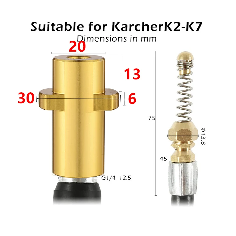 Отлично очищает пластиковые трубы даже при наличие бытовой мойки высокого давления Karcher, главное не спешить. Если трубы сильно загрязнены, как было у меня, то необходимо поступательными движениями вперёд назад проходить и через каждых два метра вытаскивать форсунку с какулями которые будут на пружине, промывать трубу, иначе возможен ещё больший засор.