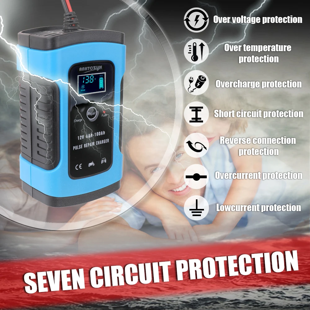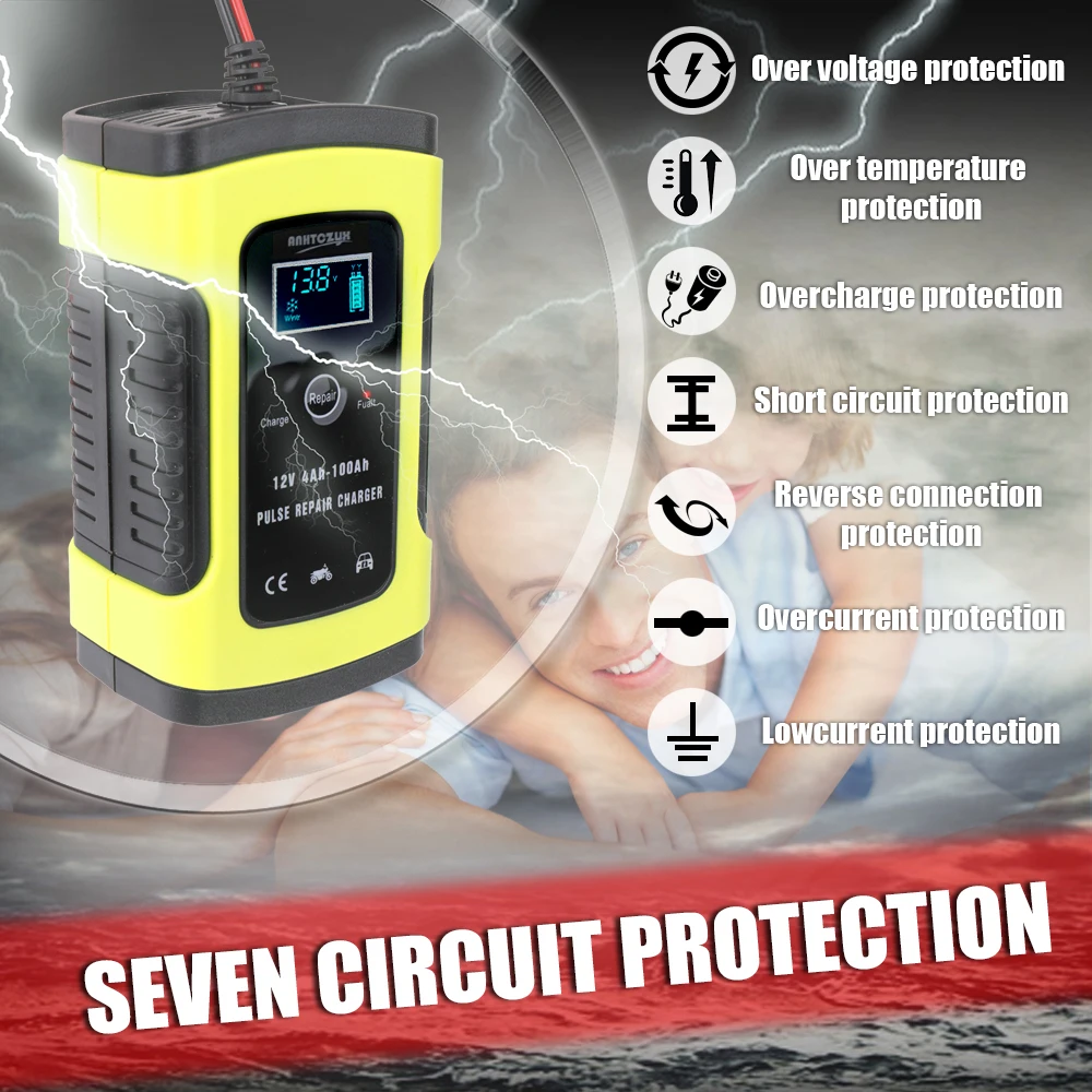 12V 6A полностью автоматическое зарядное устройство для автомобильного аккумулятора интеллектуальное зарядное устройство импульсные ремонтные зарядные устройства влажная сухая свинцово-кислотная батарея
