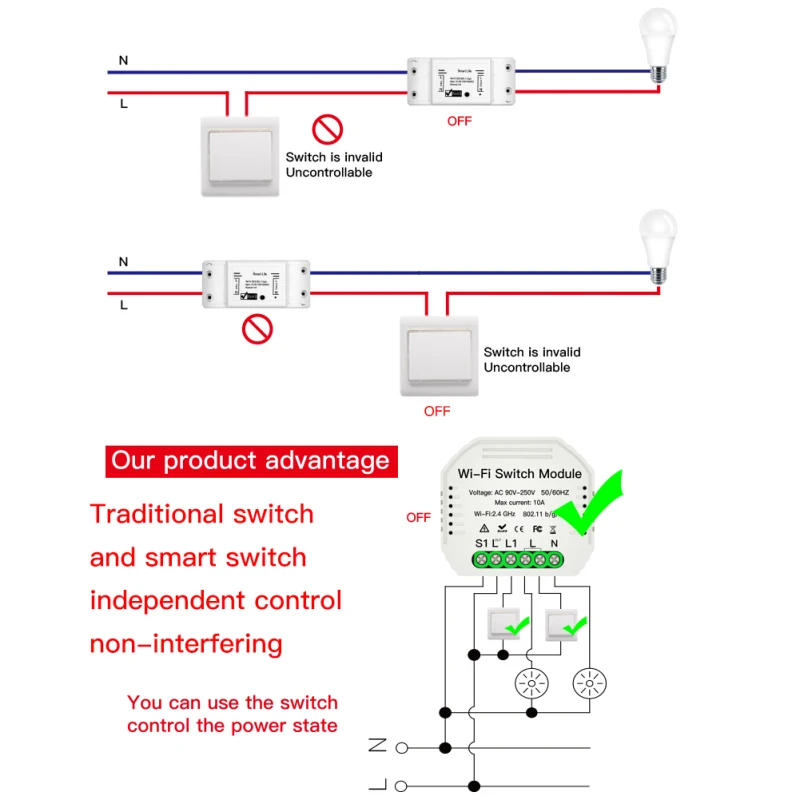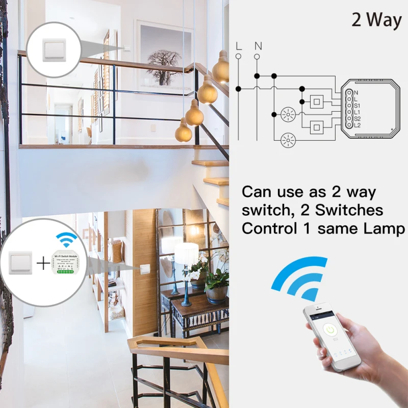 1. Легко заменить ваш традиционный переключатель, чтобы сделать его умным Также можно сделать ваш существующий двухпозиционный переключатель умным, просто установите 1 Умный переключатель «сделай сам», подходит для коробки переключателей ЕС/Великобритании, пожалуйста, подтвердите размер перед заказом. 2. Беспроводное управление освещением или устройствами с помощью голосовых настроек или автоматизации с помощью смартфона, Alexa или Google Assistant. 3. Модуль переключателя переменного тока 90-250 В переменного тока/10 А с максимальной нагрузкой может управлять широким спектром освещения и приборов 4. Управление Wi-Fi через ваши сети мобильный телефон 2,4G обеспечивает необходимое подключение к модулю переключателя «сделай сам» без необходимости в отдельном концентраторе. 5. Использует популярное универсальное приложение «smart life/Tuya» для android / ios, позволяющее полностью контролировать освещение или совместимую технику. Несколько вариантов программы позволяют планировать точное время включения света/вентиляторов и т. д. Вкл/Выкл автоматически 6. Обеспечьте своим устройствам максимальное включение/выключение интеллектуального макияжа. Просто подключите этот модуль «сделай сам» между устройством и источником питания, чтобы преобразовать большинство совместимых продуктов в «умный».