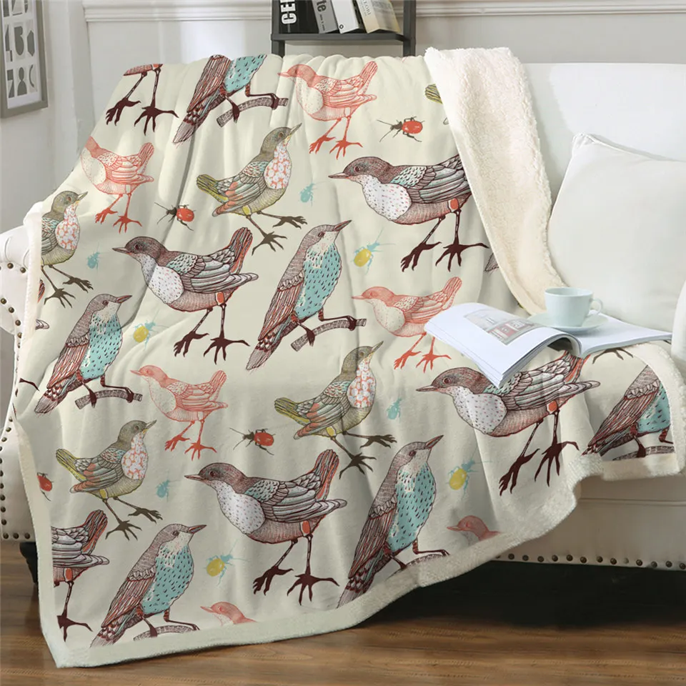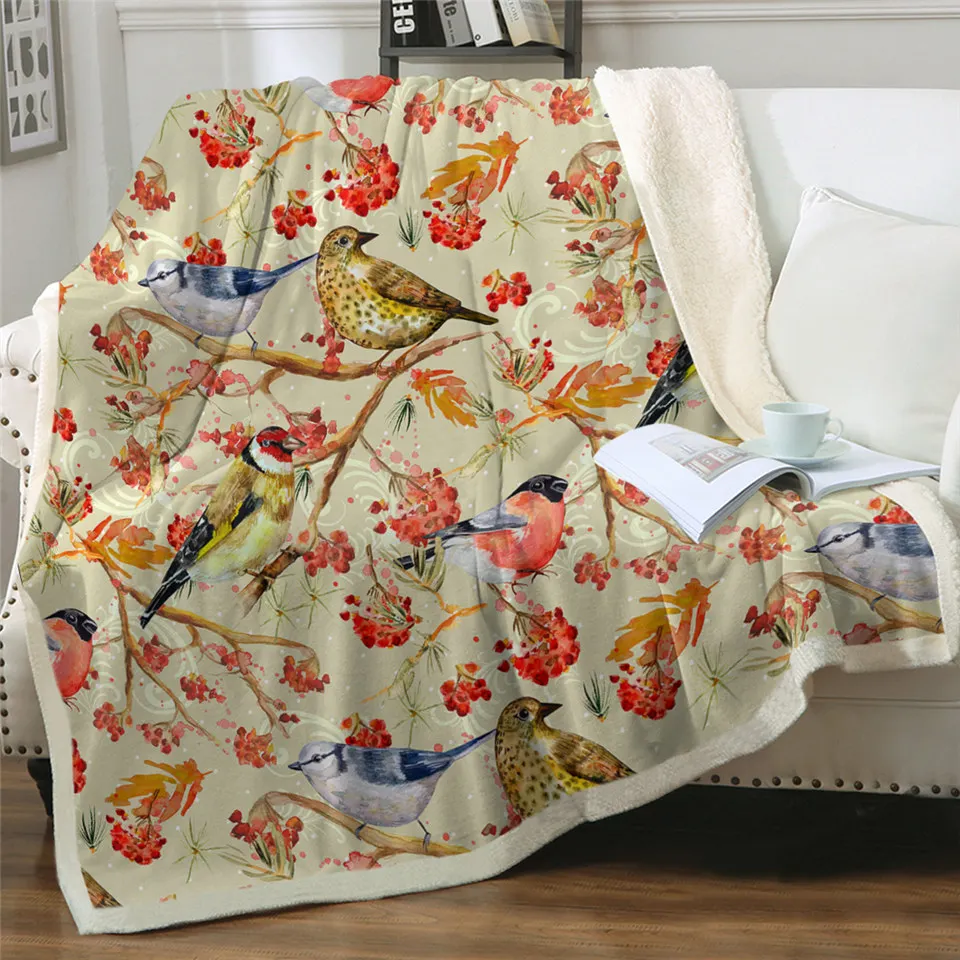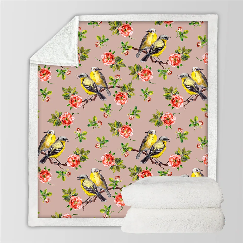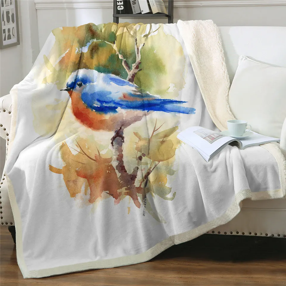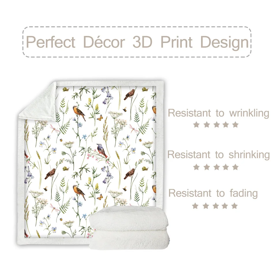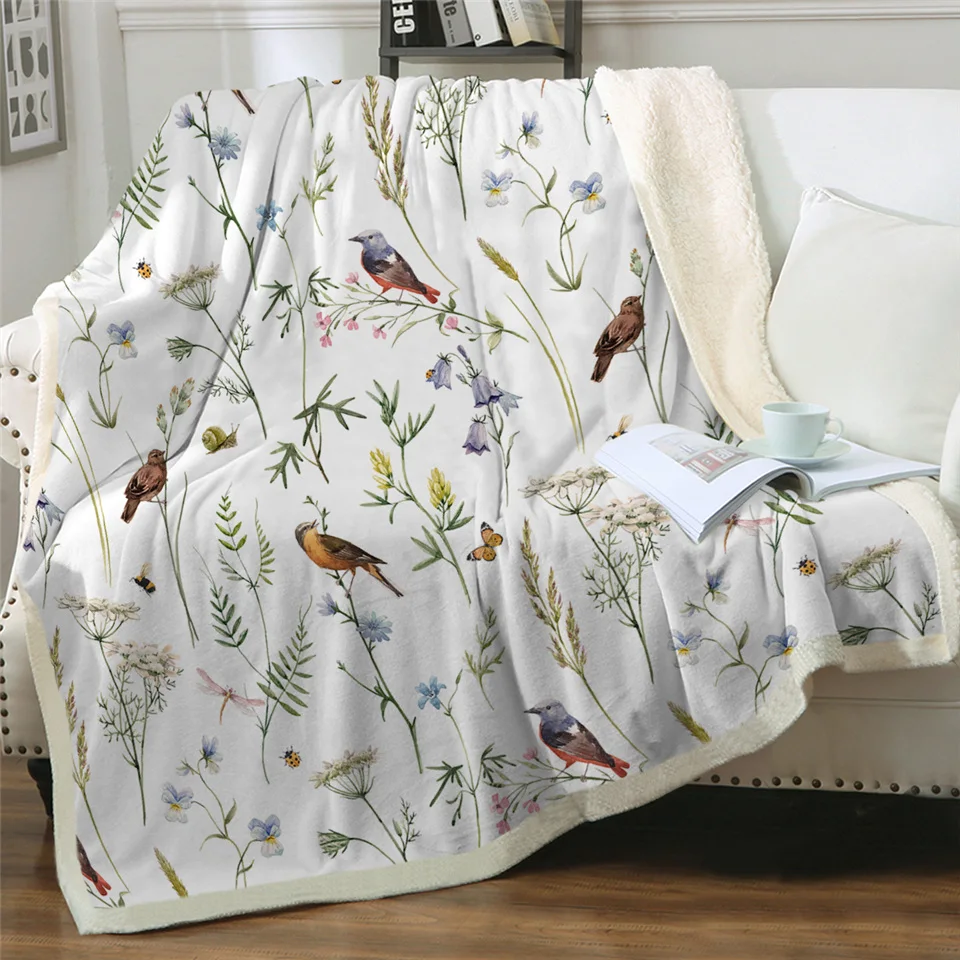 Одеяло BeddingOutlet из шерпы акварельной расцветки, одеяло с бабочками, птицами, цветочным рисунком, одеяло с листьями, насекомыми