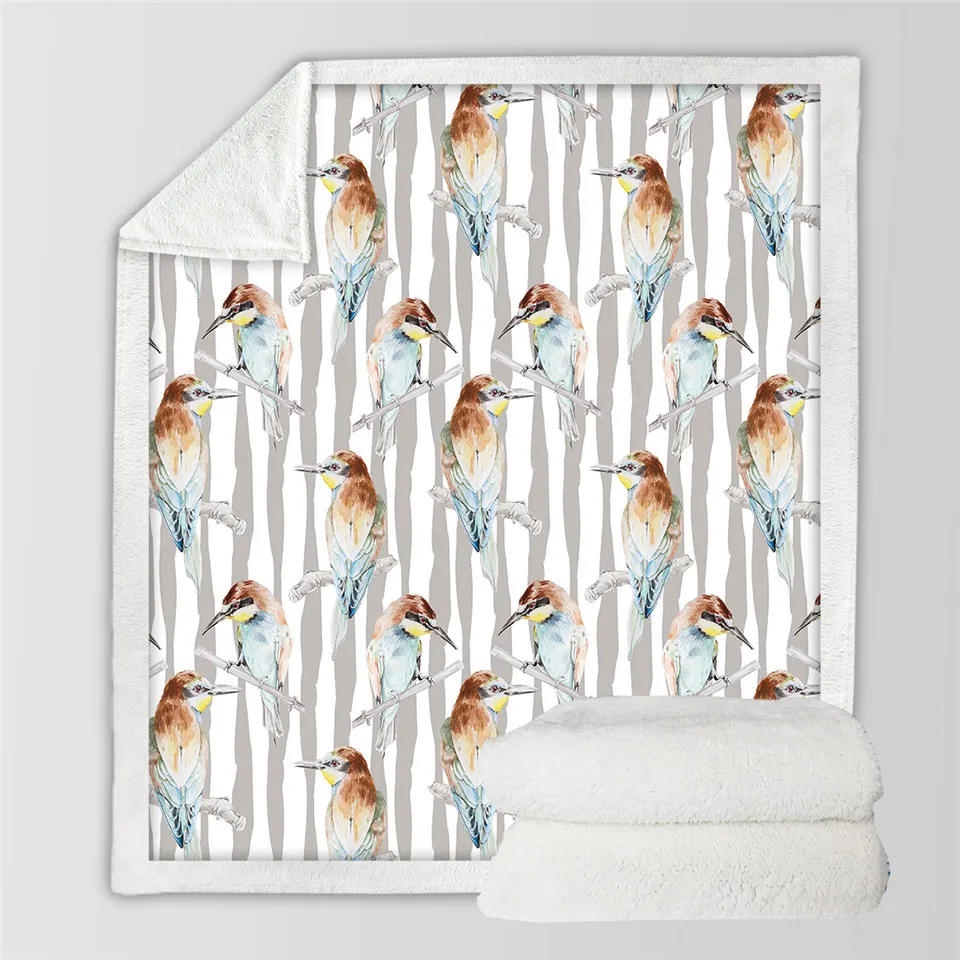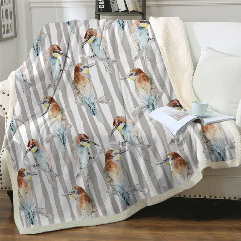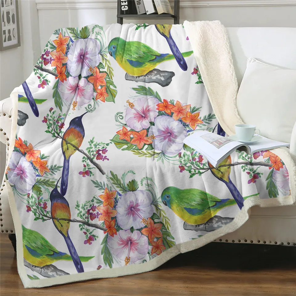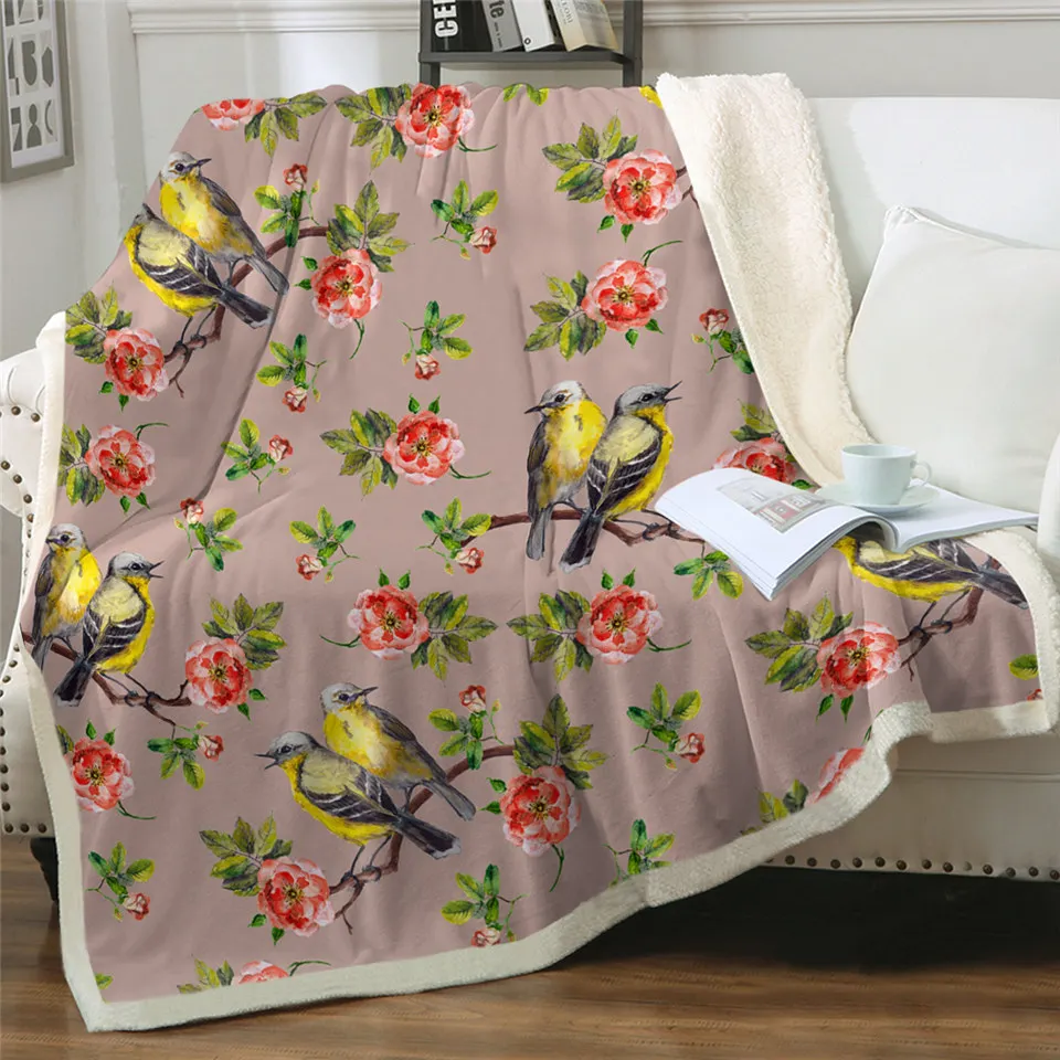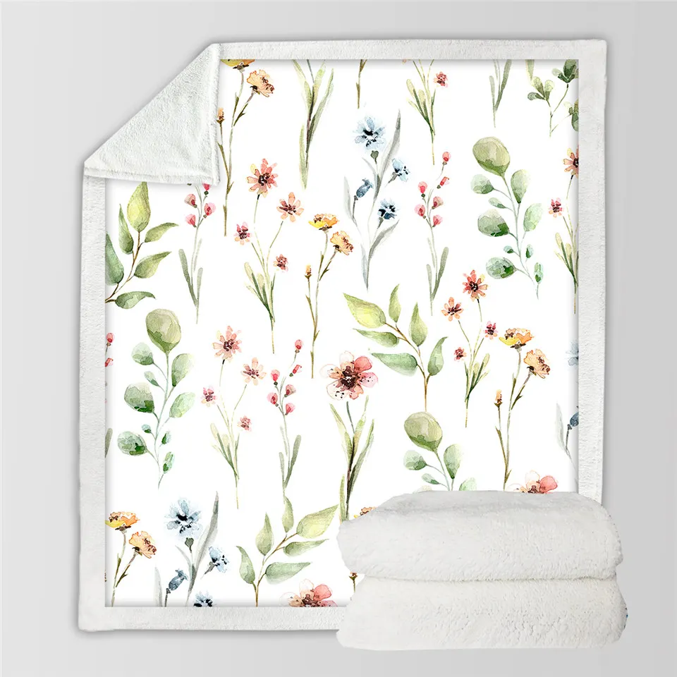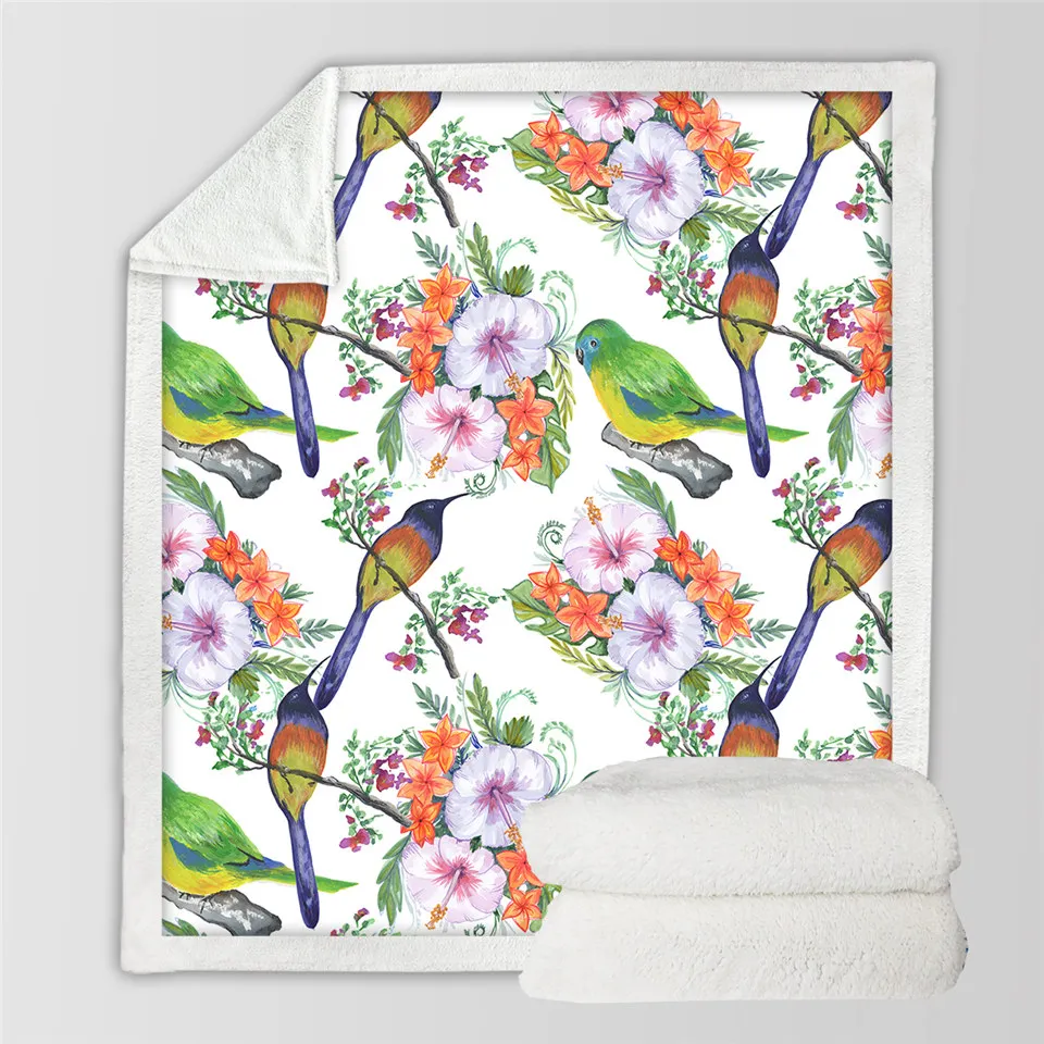 Одеяло BeddingOutlet из шерпы акварельной расцветки, одеяло с бабочками, птицами, цветочным рисунком, одеяло с листьями, насекомыми