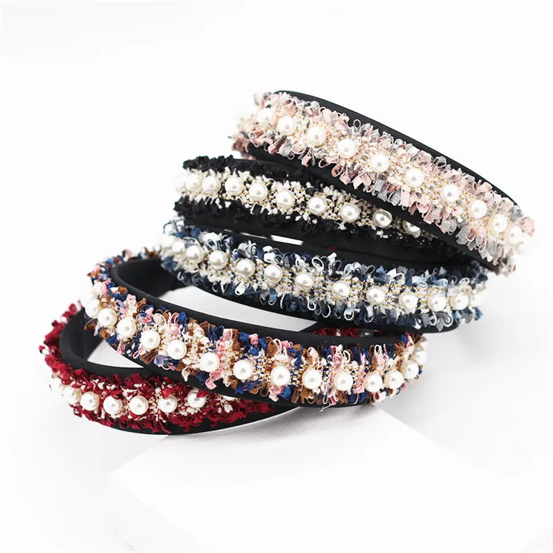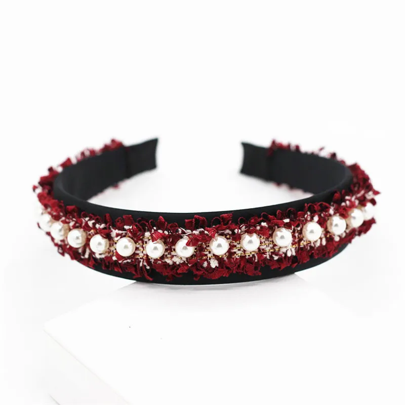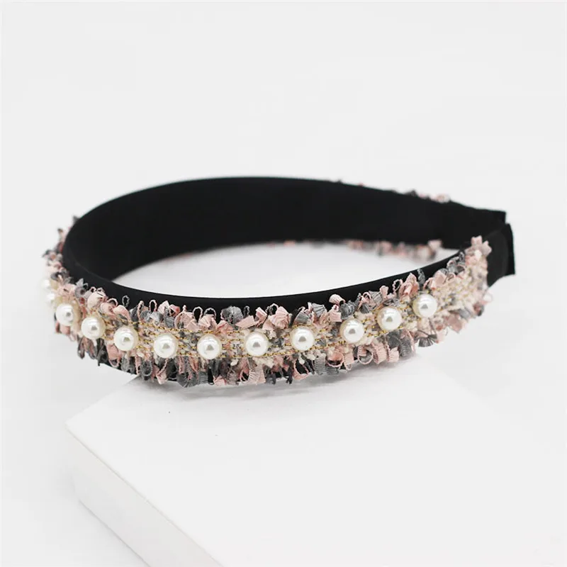 Повязка на голову женская кружевная с жемчугом