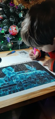 Добрый день, напишу полный отзыв, чтобы люди понимали. Итак, продавец отправил заказ быстро, буквально на следующий день, общительный, прислал по просьбе макет мозаики, я покупал под номером 1 размер 50х40, алмазы квадратные. В Томск пришло быстро, около 2 недель и на почте. Что можно сказать про упаковку - упаковано на мой взгляд очень плохо, было скручено грубо говоря в трубу, когда я вытащил сам макет, он был весь в складках и помятый за это минус звезда. Также на самой картине пленка НЕ прозрачная, а БЕЛАЯ, то есть по мере выкладывания, я не вижу полной картины и макет сам мне не виден. Внутри нашел 2 прибора для выкладывания, на концах приборов есть приспособа чтобы выкладывать по 4 и по 10 алмазинок в ряд, очень удобно когда одного цвета много, также в комплекте емкость по мозаику и пустые пакетики.