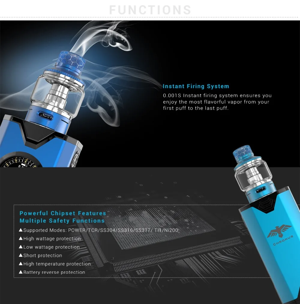 Набор Sigelei Chronus с питанием от аккумулятора 18650 с 510 интерфейсами типа TFT экран электронная сигарета Vape Kit