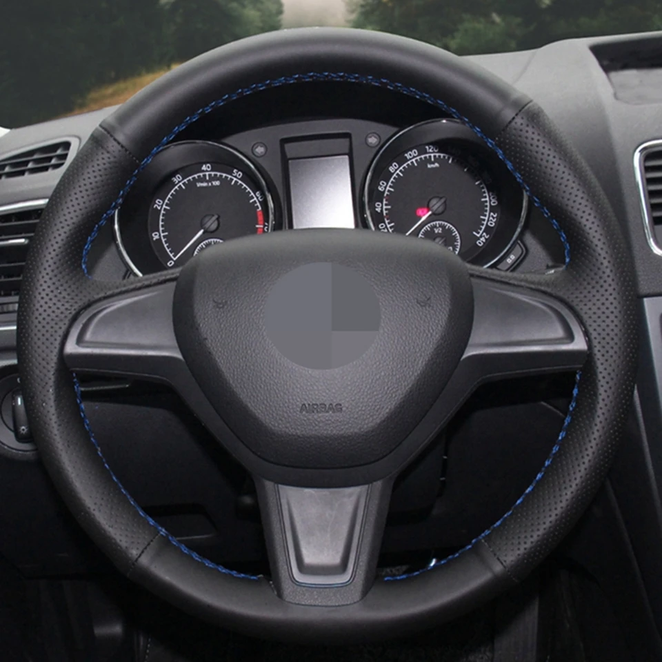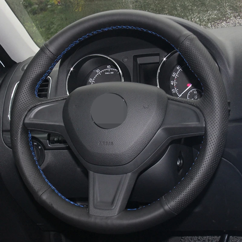 Сшитый вручную черный мягкий искусственная кожа DIY чехол рулевого колеса автомобиля для Skoda Yeti 2014 2015 2016 Rapid 2015
