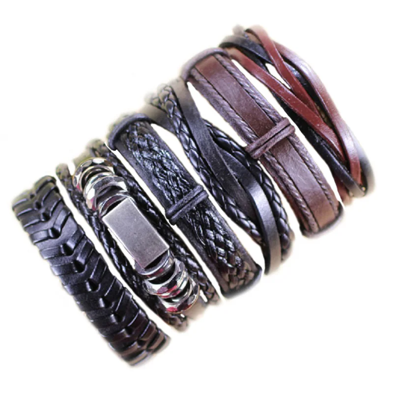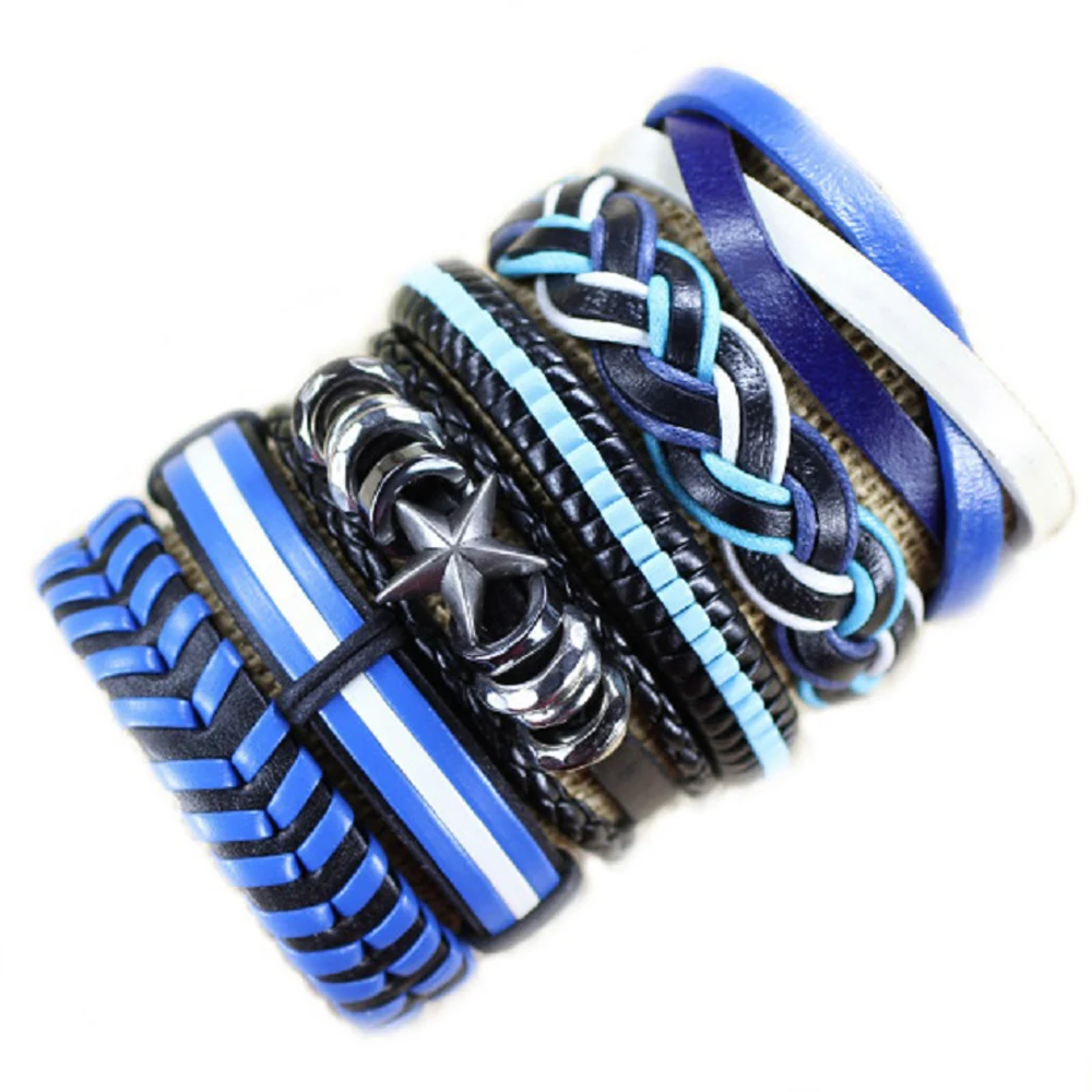 Оптовая продажа, 6 шт.компл., многослойные плетеные браслеты разных стилей или специальные кожаные браслеты из 6 шт., браслеты для мужчин KD1