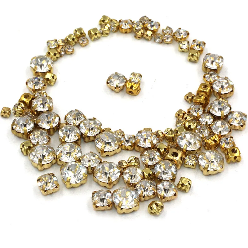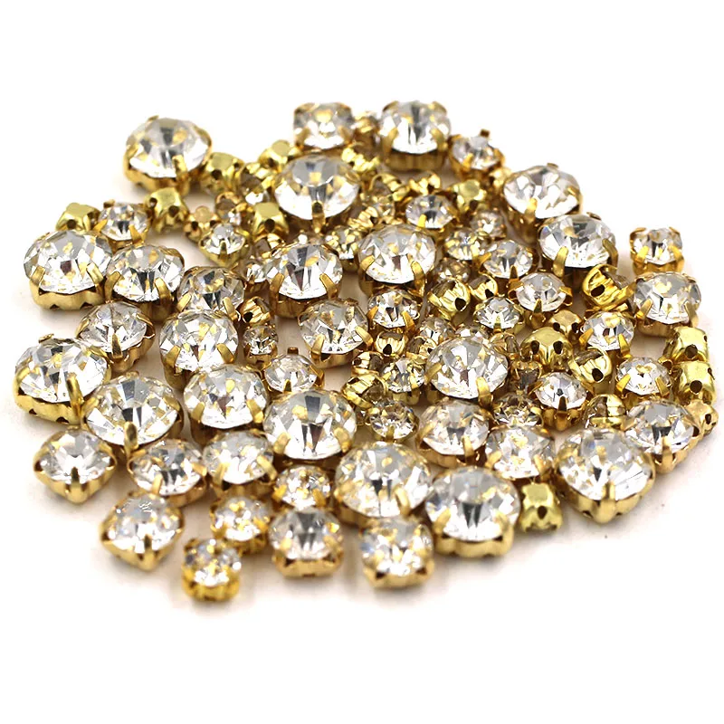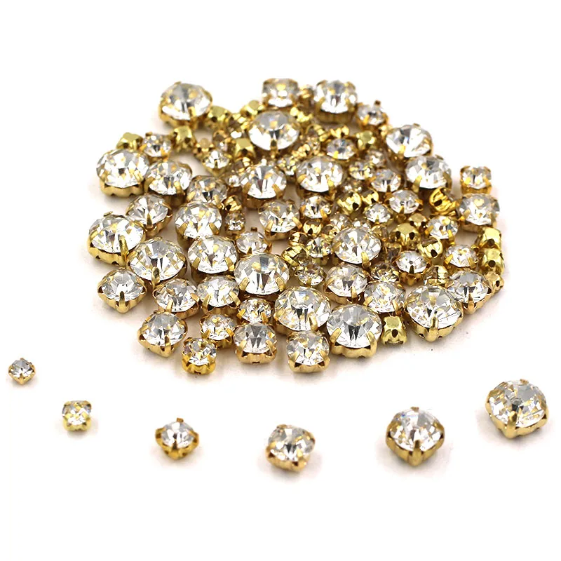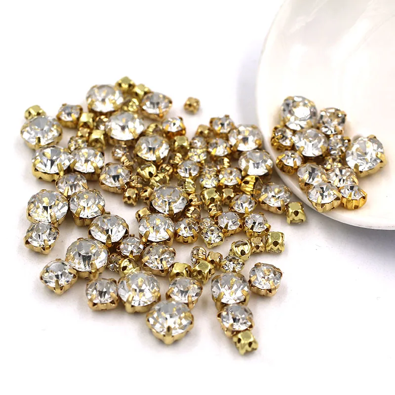 Свадебные украшения 100 шт.упак., разноцветные прозрачные белые стеклянные бусины разных размеров, Золотая основа, пришивные стразы, аксессуары для одежды сделай сам