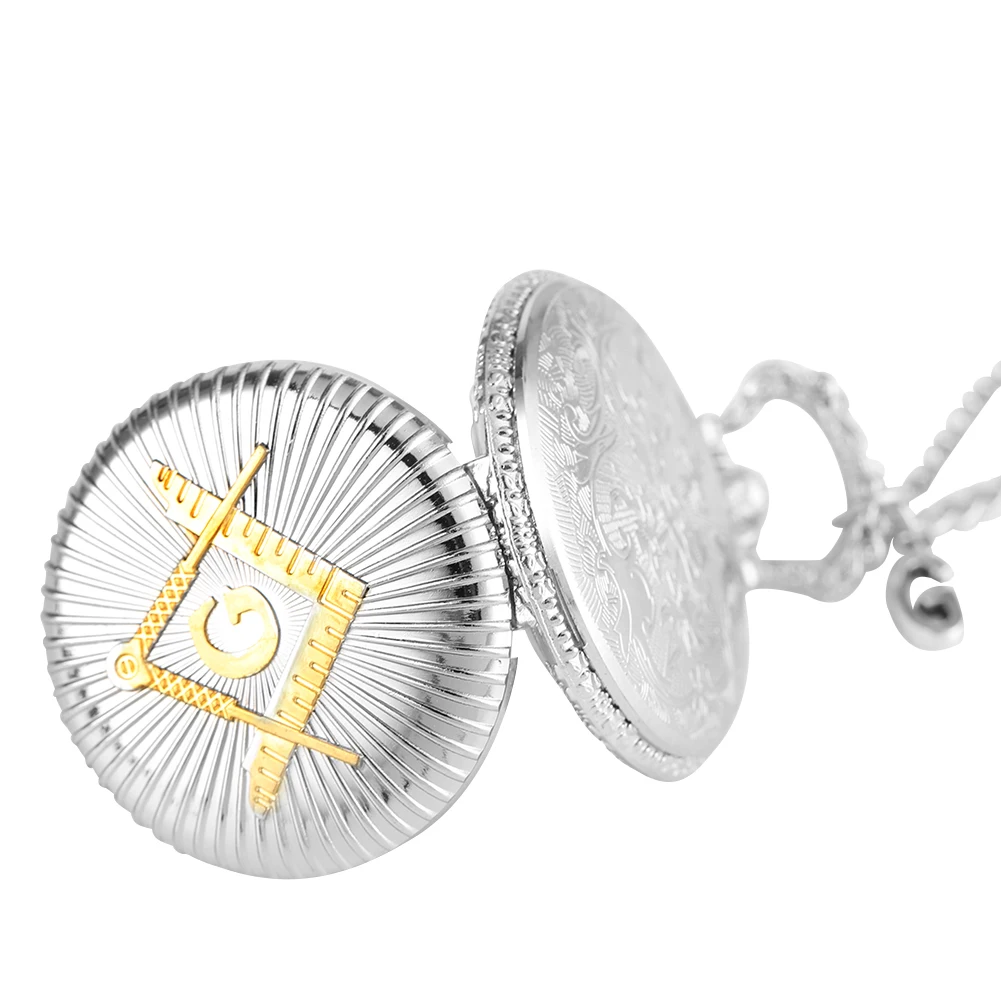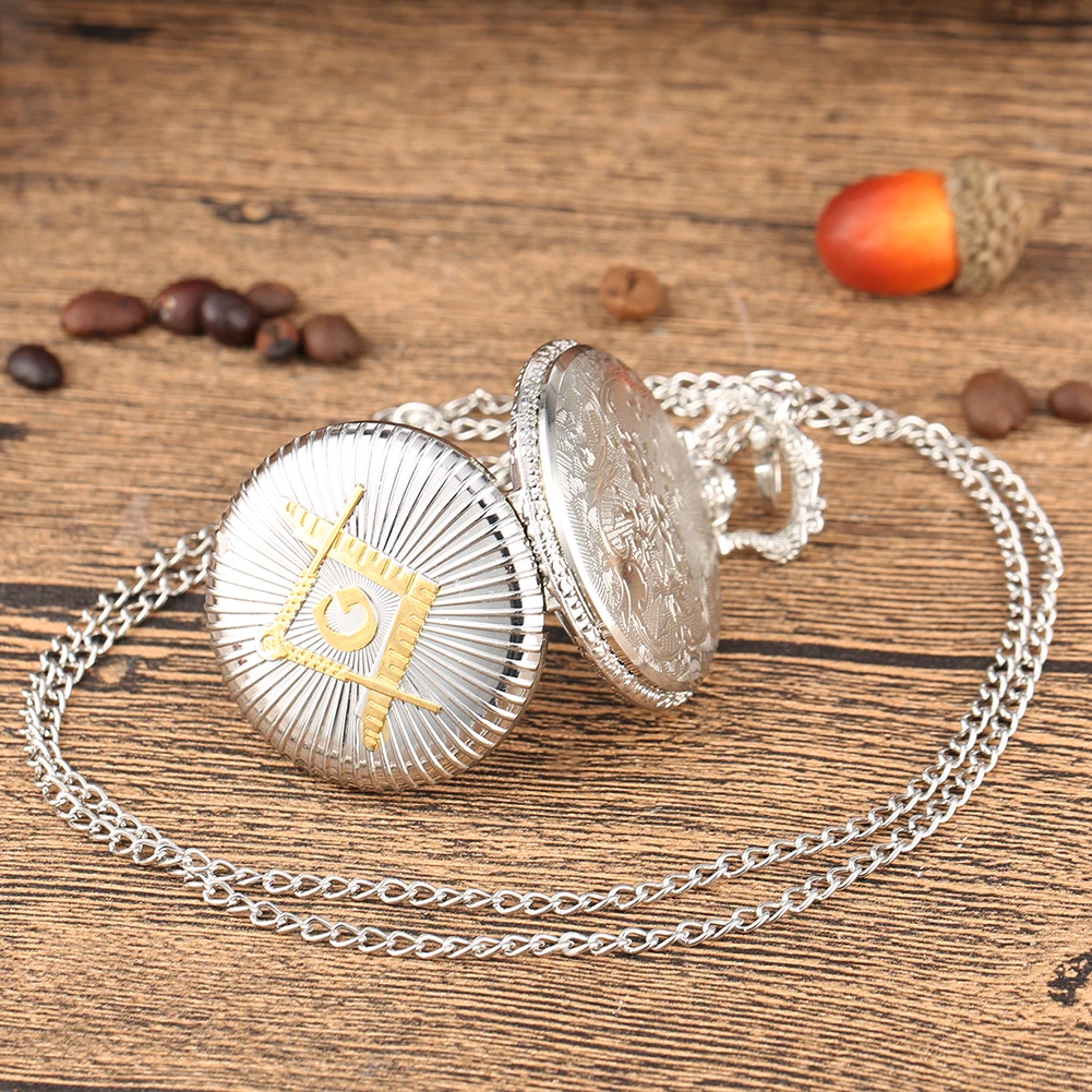Роскошные серебряные часы с масонской тематикой, сплав, кварцевые карманные часы, подвеска-драгоценный камень, часы, ожерелье, цепочка с G аксессуаром