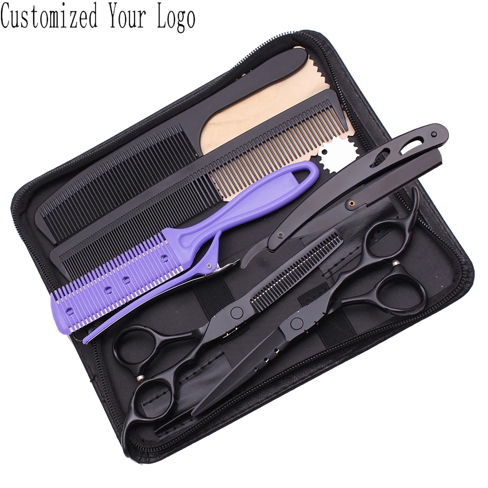 Профессиональные Парикмахерские ножницы добавить мешок 6 "Нержавеющая Настройка логотипа филировочные ножницы для резки ножницы для волос DIY C1010