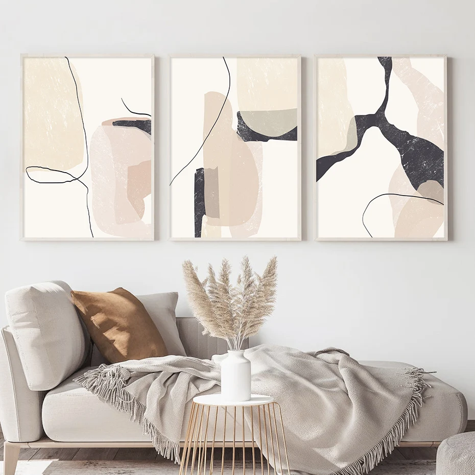 Настенные картины в минималистичном стиле с абстрактными волнистыми...