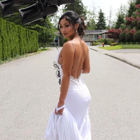 Черное вечернее платье-Русалка с V-образным вырезом и открытой спиной