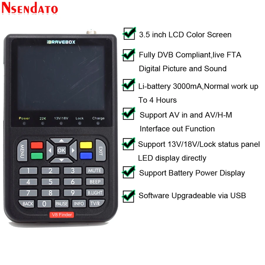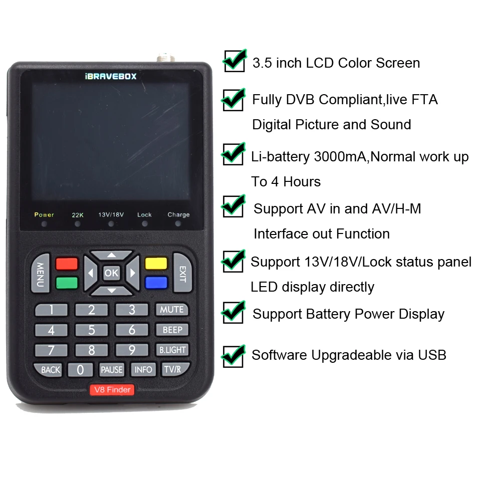 Искатель спутникового сигнала V8, цифровой, с ЖК-дисплеем 3,5 дюйма