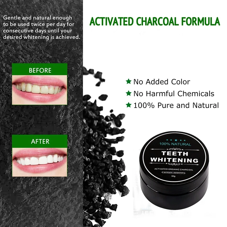 Формула активированного угля безопасна в использовании для отбеливания зубов, а также удобна в деснах. Естественным образом отбеливает зубы, не через суровые стоматологические отбеливающие пероксиды, а через силу активированного угля, лучшие очищения и детоксификаторы природы. Уникальная формула отбеливает зубы с течением времени и помогает удалить пятна из ряда причин: кофе-пятна, вино, сигареты и многое другое-все без жестких химических веществ или отбеливатель. Мы считаем, что вы получите самый уверенный процесс улыбки «Adsorption» после использования продуктов! Получите идеальную Яркую Улыбку!
