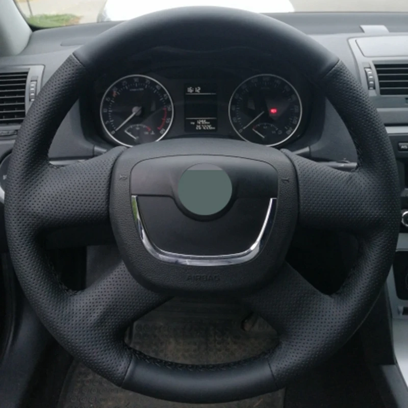 DIY черный мягкий искусственный кожаный чехол рулевого колеса автомобиля для Skoda Octavia Superb 2012 Fabia Skoda Octavia a5 2012