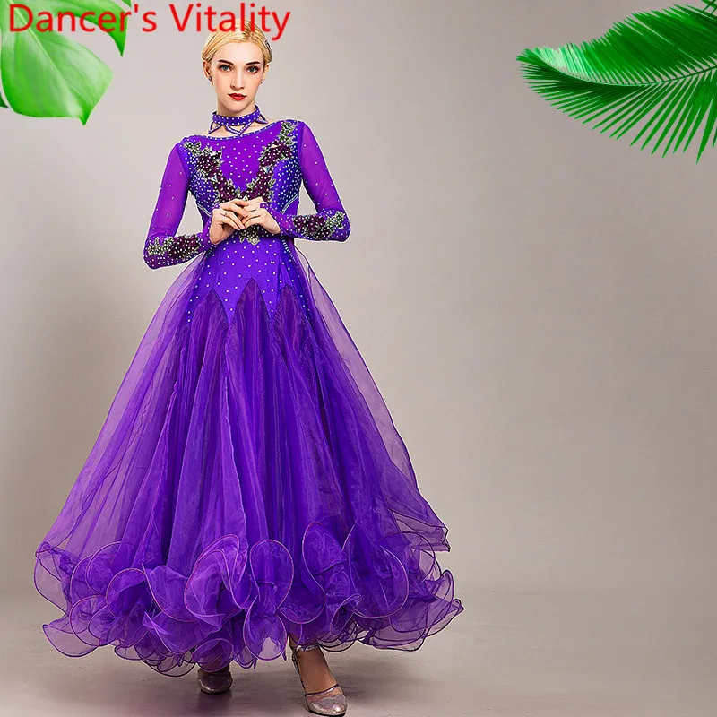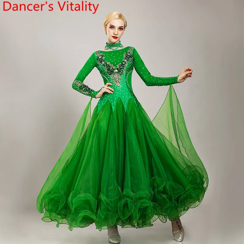 Новинка, современный танцевальный костюм, алмазная вышивка, большой подол, платье для бальных танцев, вальс, джаз, танцы, сценические наряды