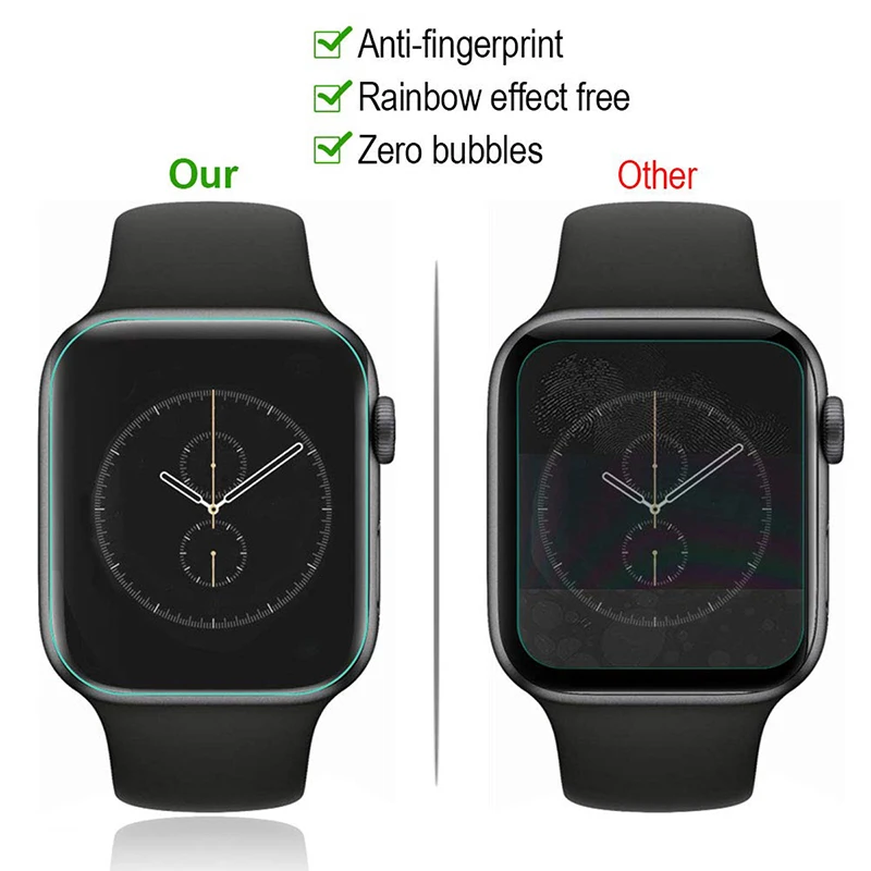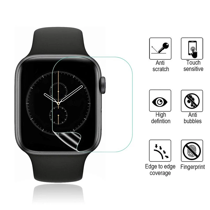 Pelicula для Apple Watch Series 7 6 SE 5 4 44 мм 40 мм 45 мм полное покрытие Защита экрана для Iwatch 3 2 1 42 мм 38 мм Гидрогелевая пленкаОсобенности: