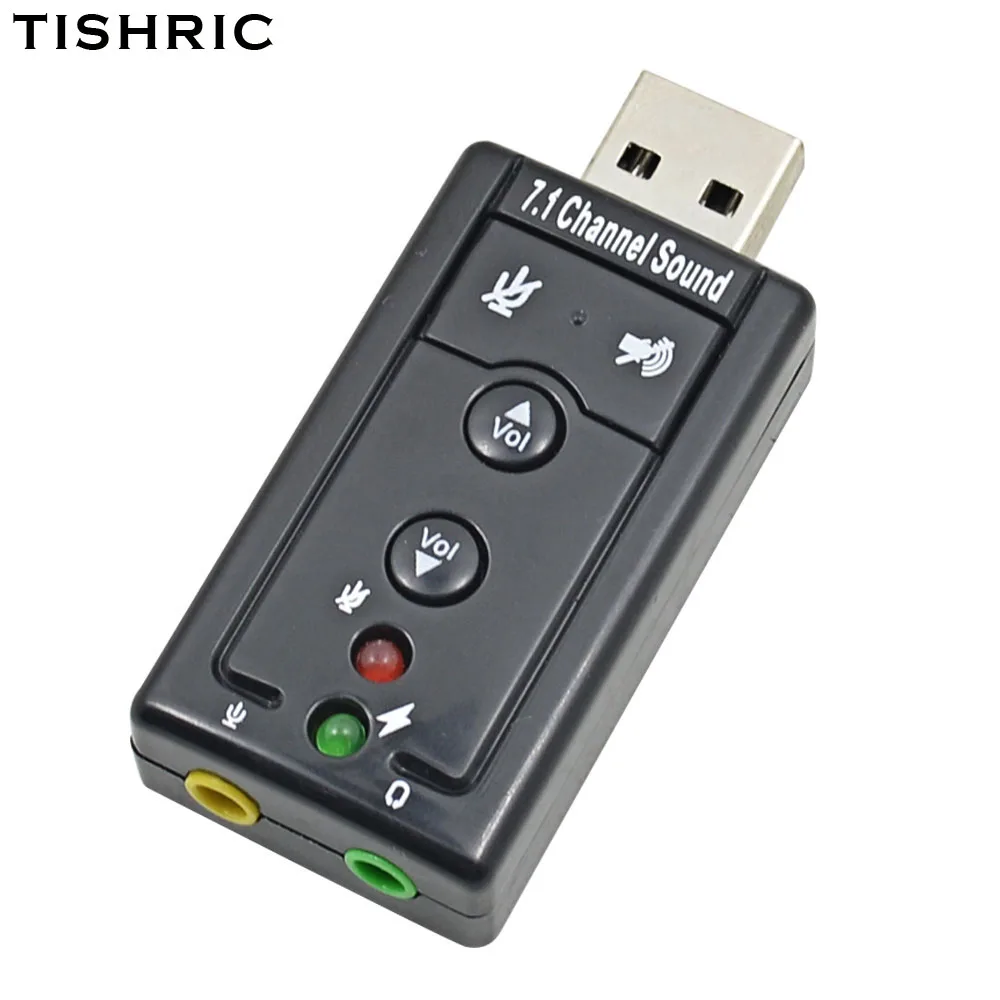 Профессиональная звуковая карта TISHRIC с USB, 7,1 каналов, звуковой микрофон, гарнитура, аудиоадаптер для ноутбука, ПК, внешняя звуковая карта с USB