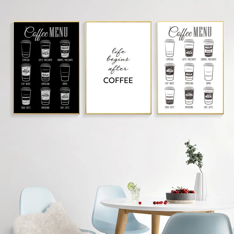 Черно-белая Картина на холсте, Постер для кафе, магазина, Скандинавское кофейное меню, настенные картины, художественный принт, декор для стен HD2757