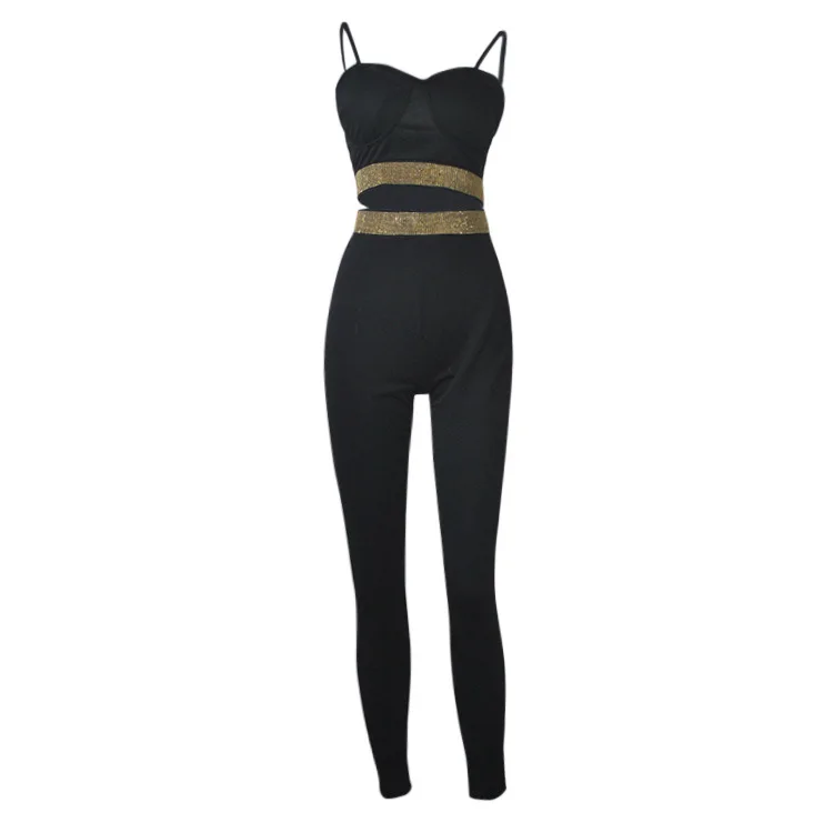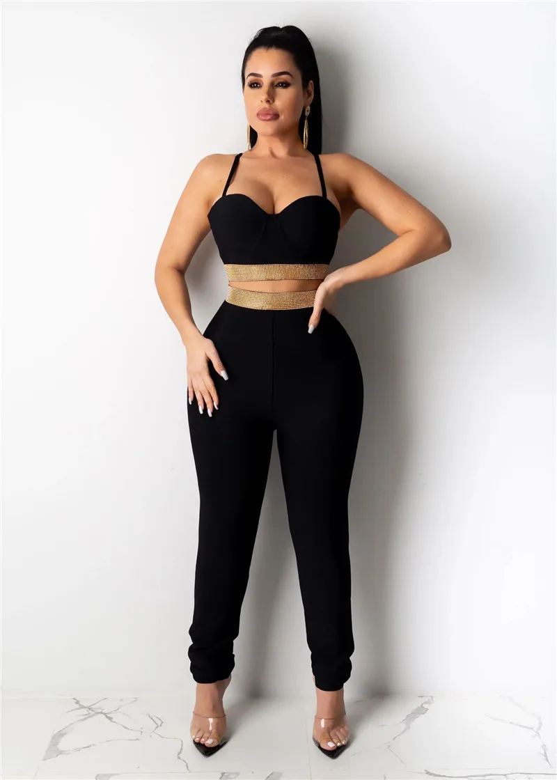 Женский комплект из двух предметов с бриллиантами Adogirl, костюм для ночного клуба на тонких бретельках, укороченный топ, узкие брюки, женские облегающие костюмы