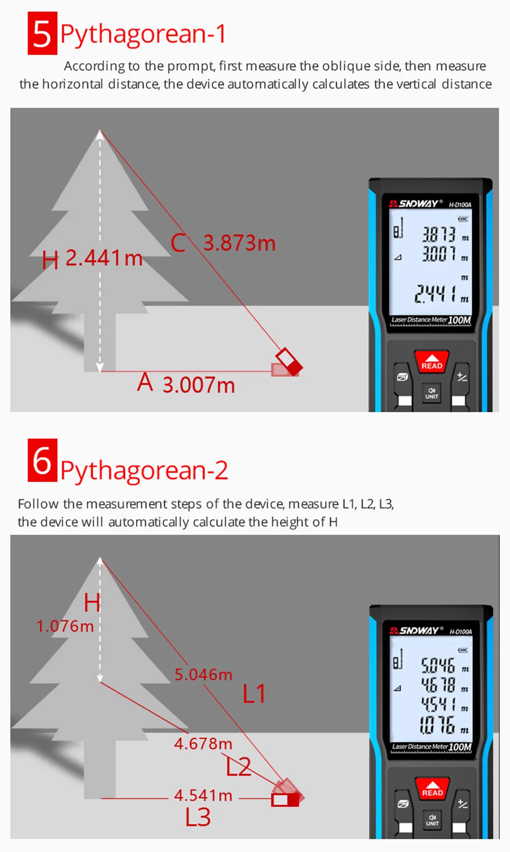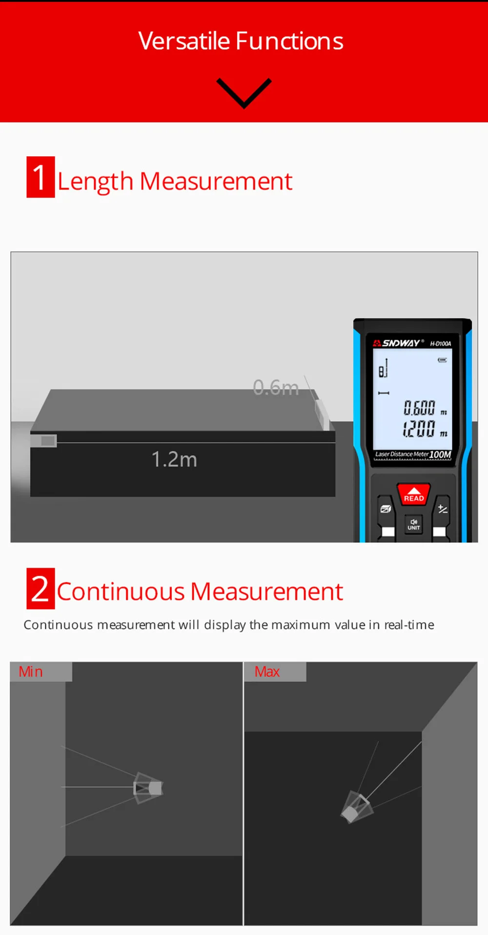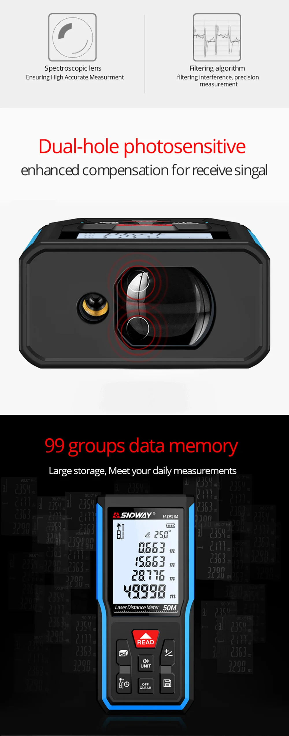 Дальномер SNDWAY, лазер, дальномер 100 м, лазерная рулетка, измерительная линейка