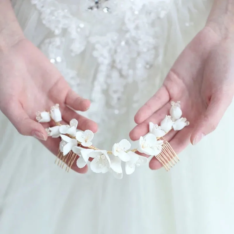 Керамическая повязка на голову SLBRIDAL ручной работы с кристаллами Стразы Свадебная повязка на голову гребень Серьги Свадебные аксессуары для волос женские ювелирные изделия