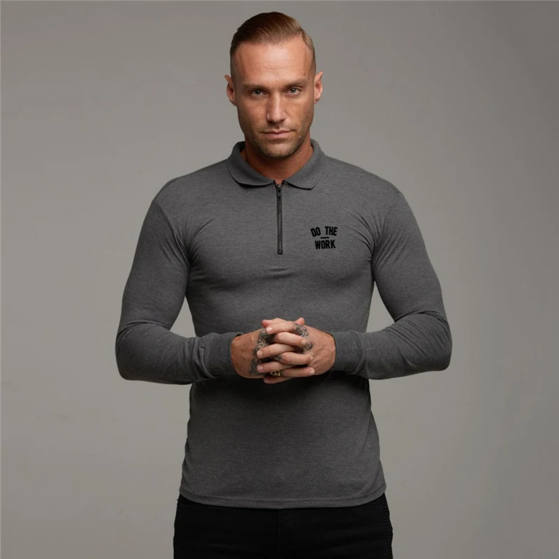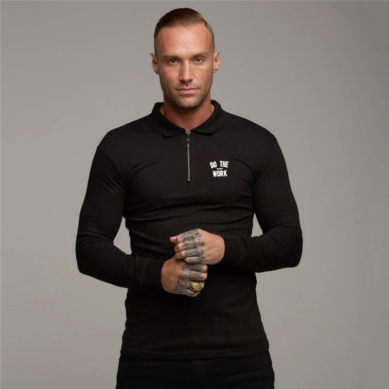 Новая модная рубашка поло в европейском и американском стиле, Мужская брендовая приталенная рубашка поло на молнии, хлопковая деловая Мужская рубашка с длинным рукавом