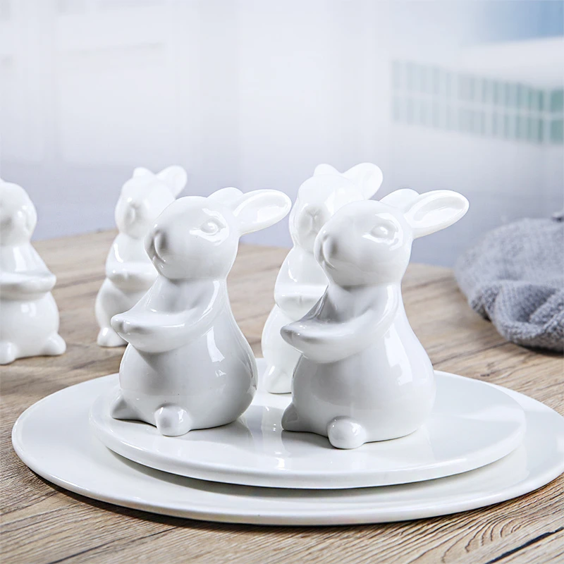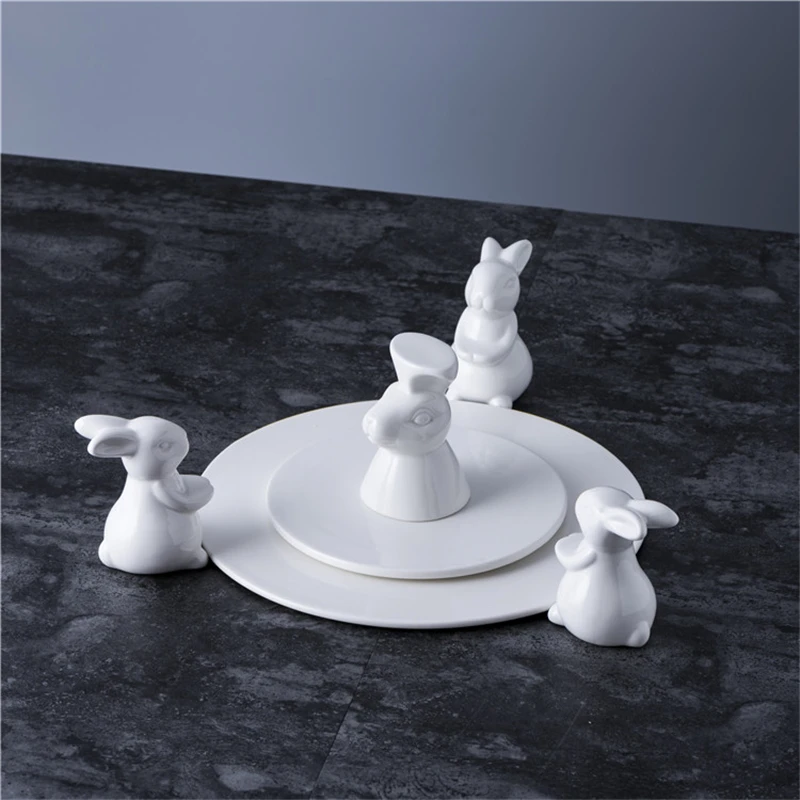 Белая керамическая плоская тарелка в виде кролика, тарелка для торт...