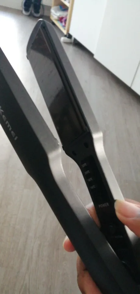 утюжок пришёл примерно за 2 недели немного поцарапан . щипцы не прилегают к друг другу идеально есть просвет. шнур длинный. есть регулировка температуры работает исправно. не знала что в добавок ещё добавят фиолетовую штуку.