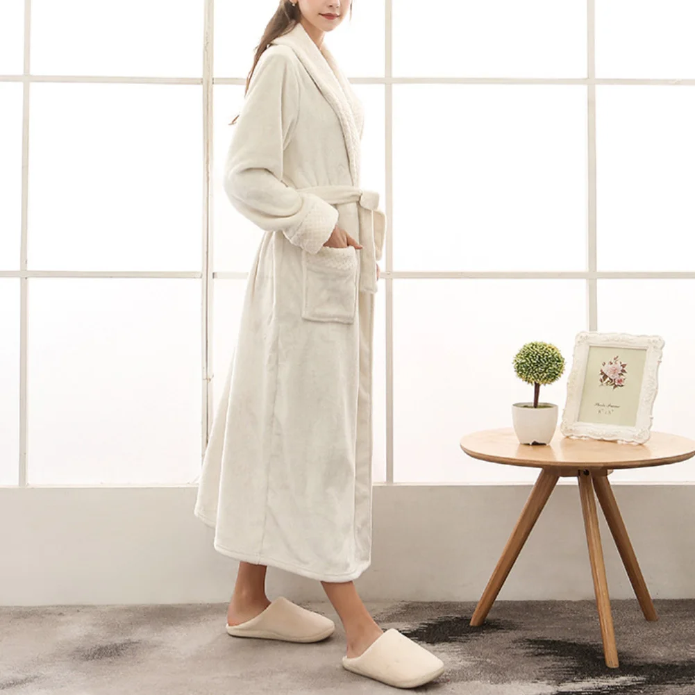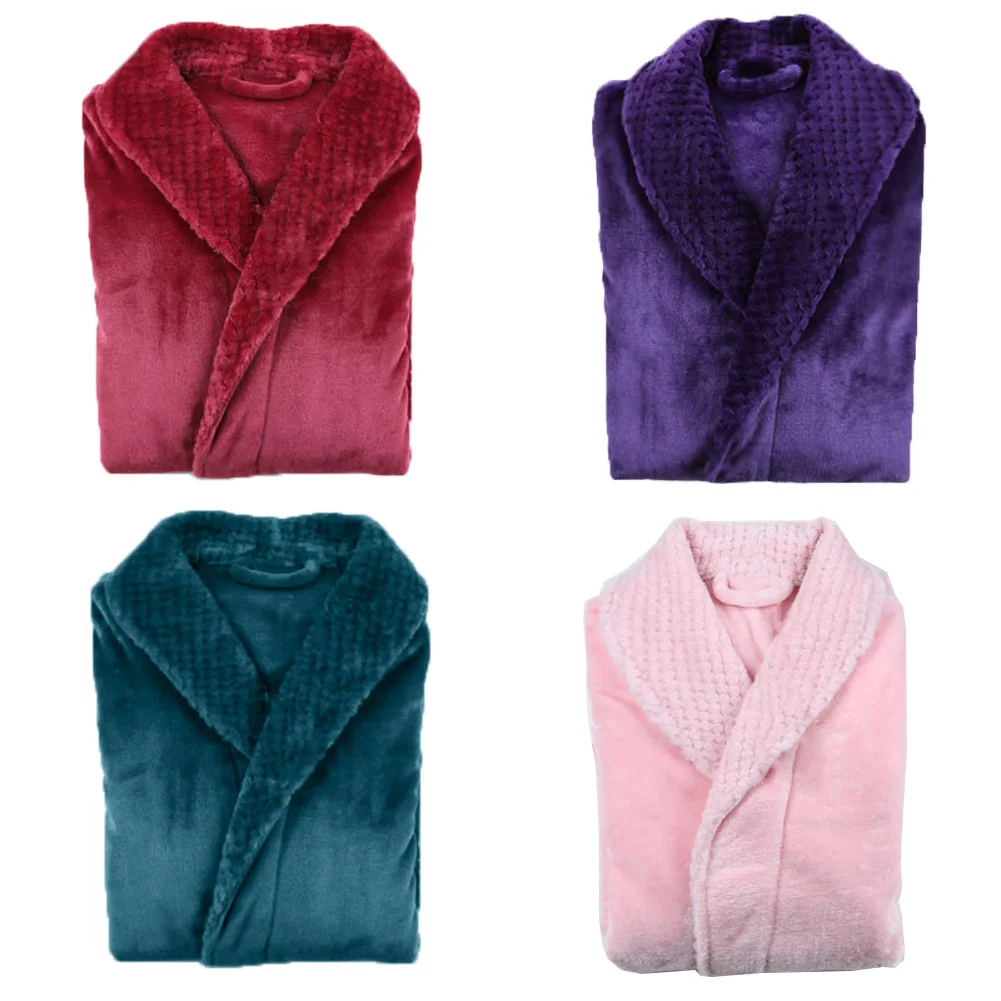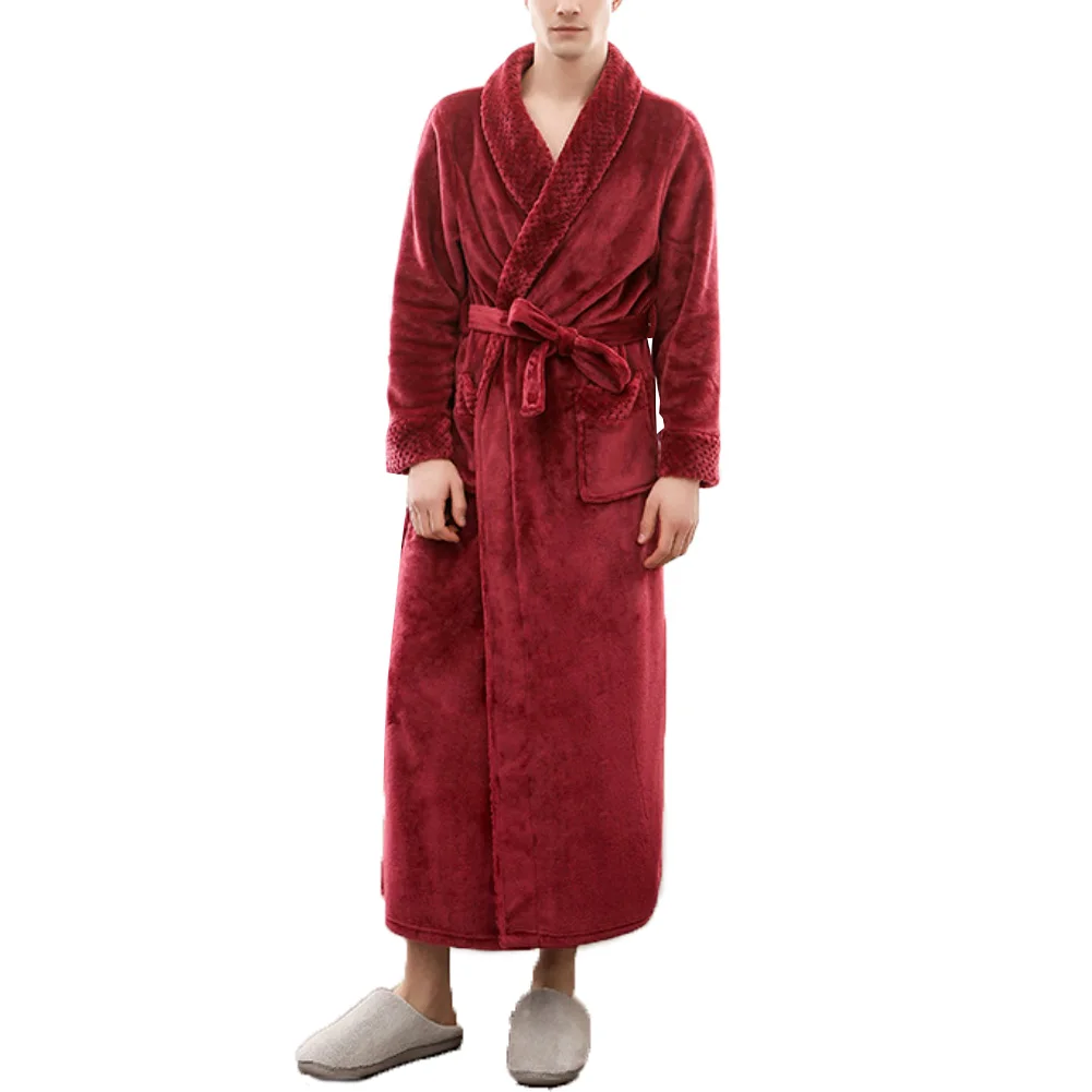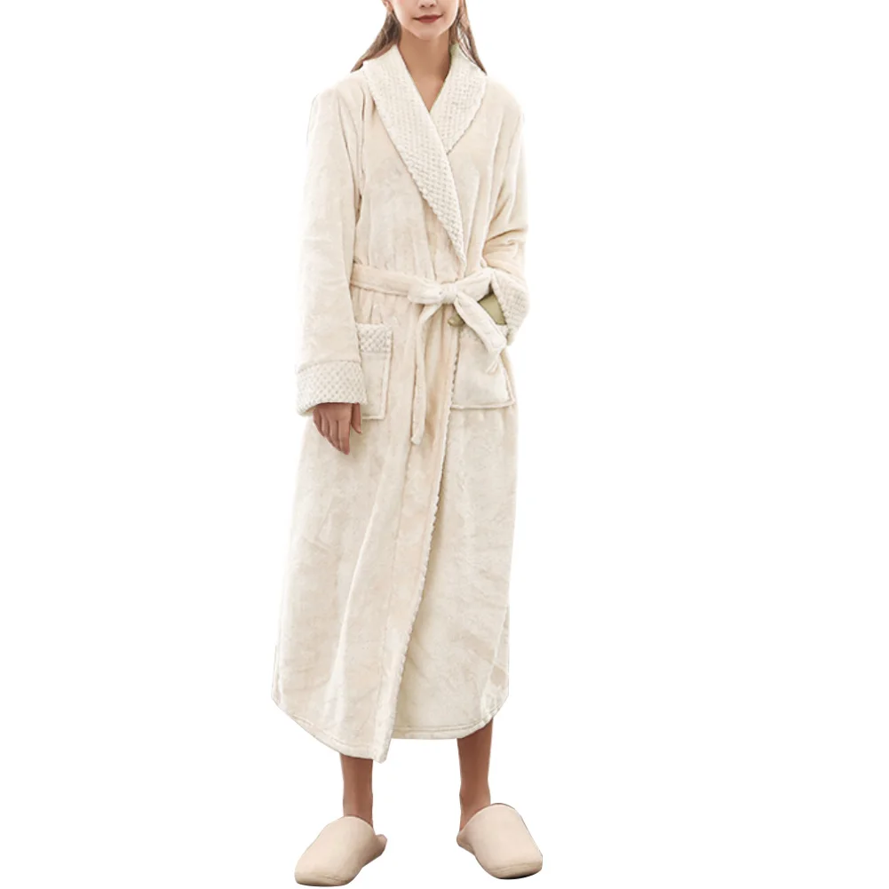 Зимний банный халат для сна для женщин и мужчин, банные халаты из кораллового флиса, однотонный утепленный банный халат длиной до щиколотки, халат, одежда для сна
