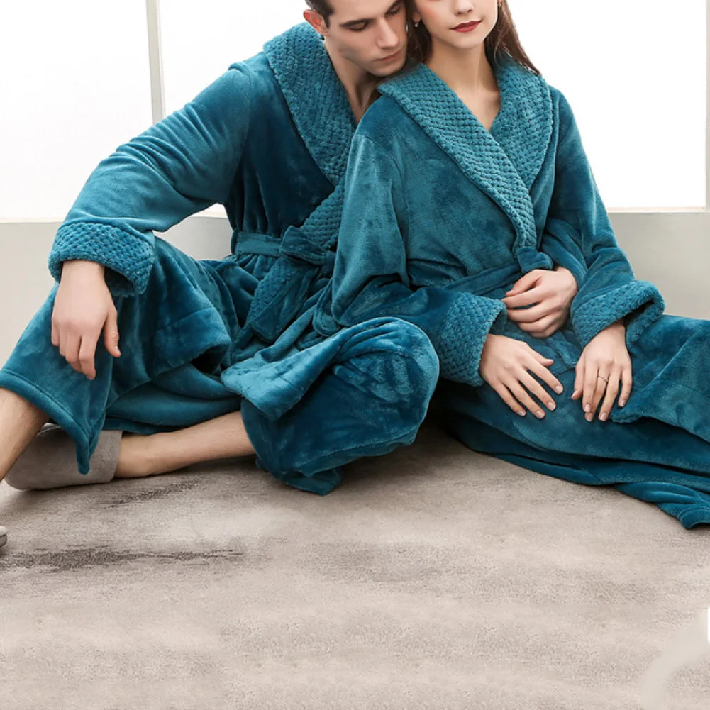 Халат фланелевый длинный теплый для мужчин и женщин, роскошный пика...
