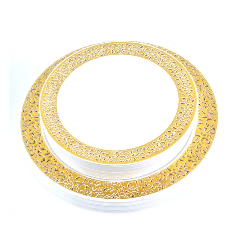 25 упаковок золотых кружевных пластиковых тарелок для свадебной веч...