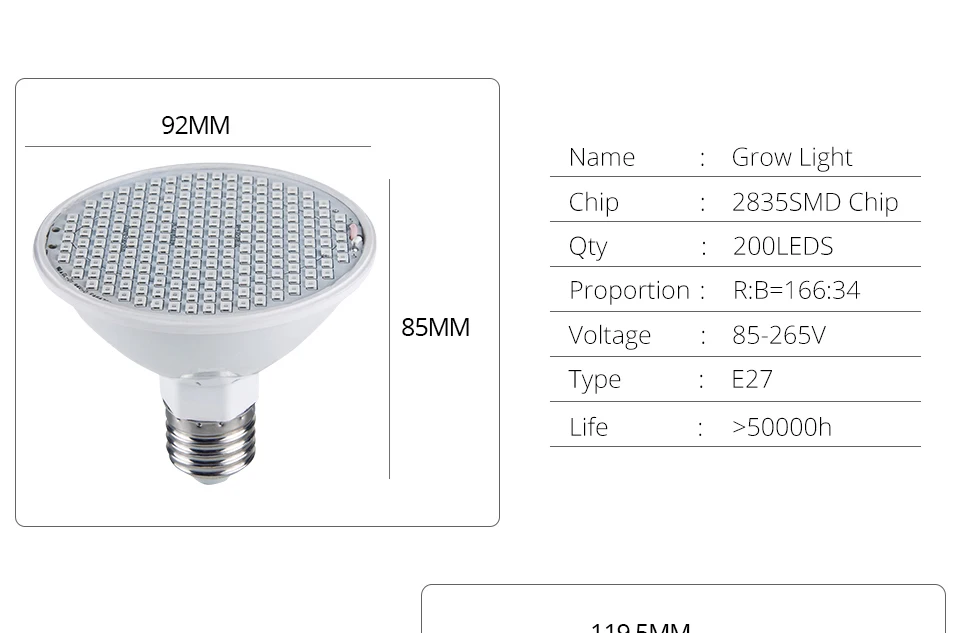 Лампы полного спектра для выращивания растений, 60126200 светодиодов, E27, красный, синий светодиодный