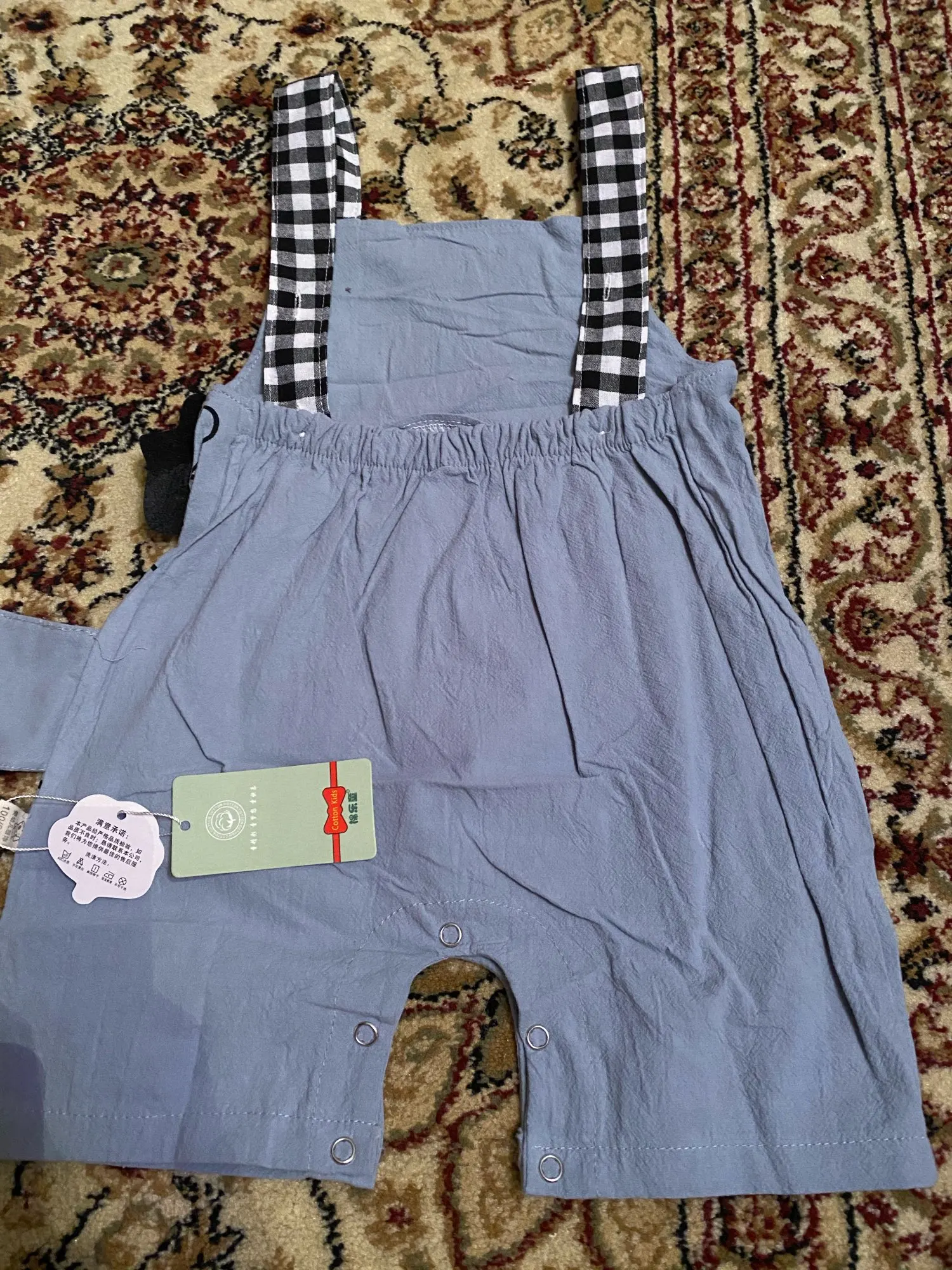 Красивый детский комбинезон, хлопок, хорошее качество, без запаха, лёгкий, мягкий, приятный на ощупь, лямки регулируются, доставка 2 недели. Спасибо продавцу.