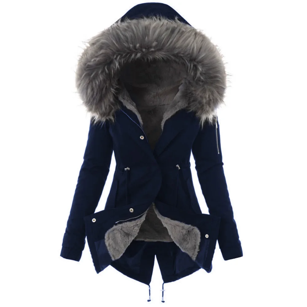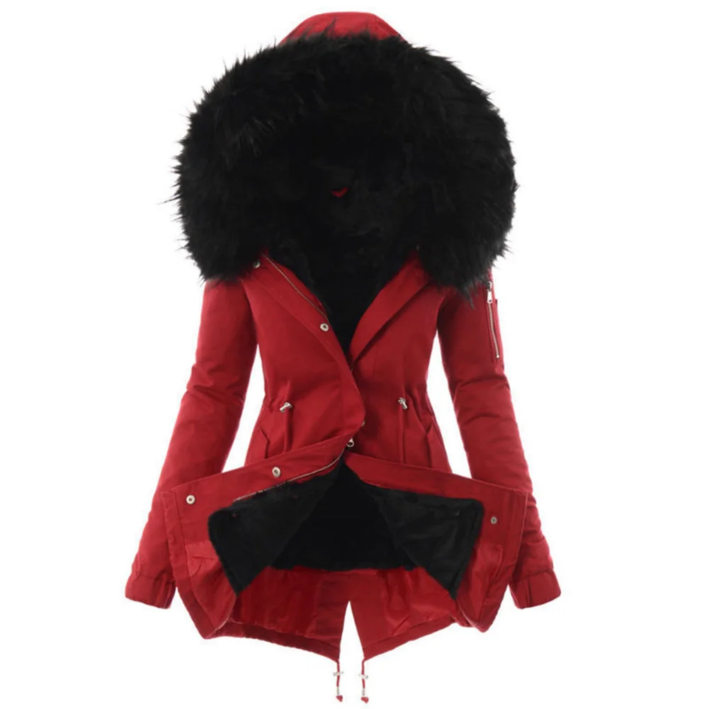 Женский зимний теплый пуховик с капюшоном и искусственным мехом, облегающее пальто на молнии, верхняя одежда