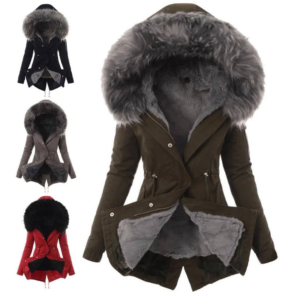 Женское пальто из искусственного меха, зимняя куртка, женское Свободное пальто, куртка с капюшоном, Толстая теплая облегающая куртка на молнии, теплая ветрозащитная куртка для улицы