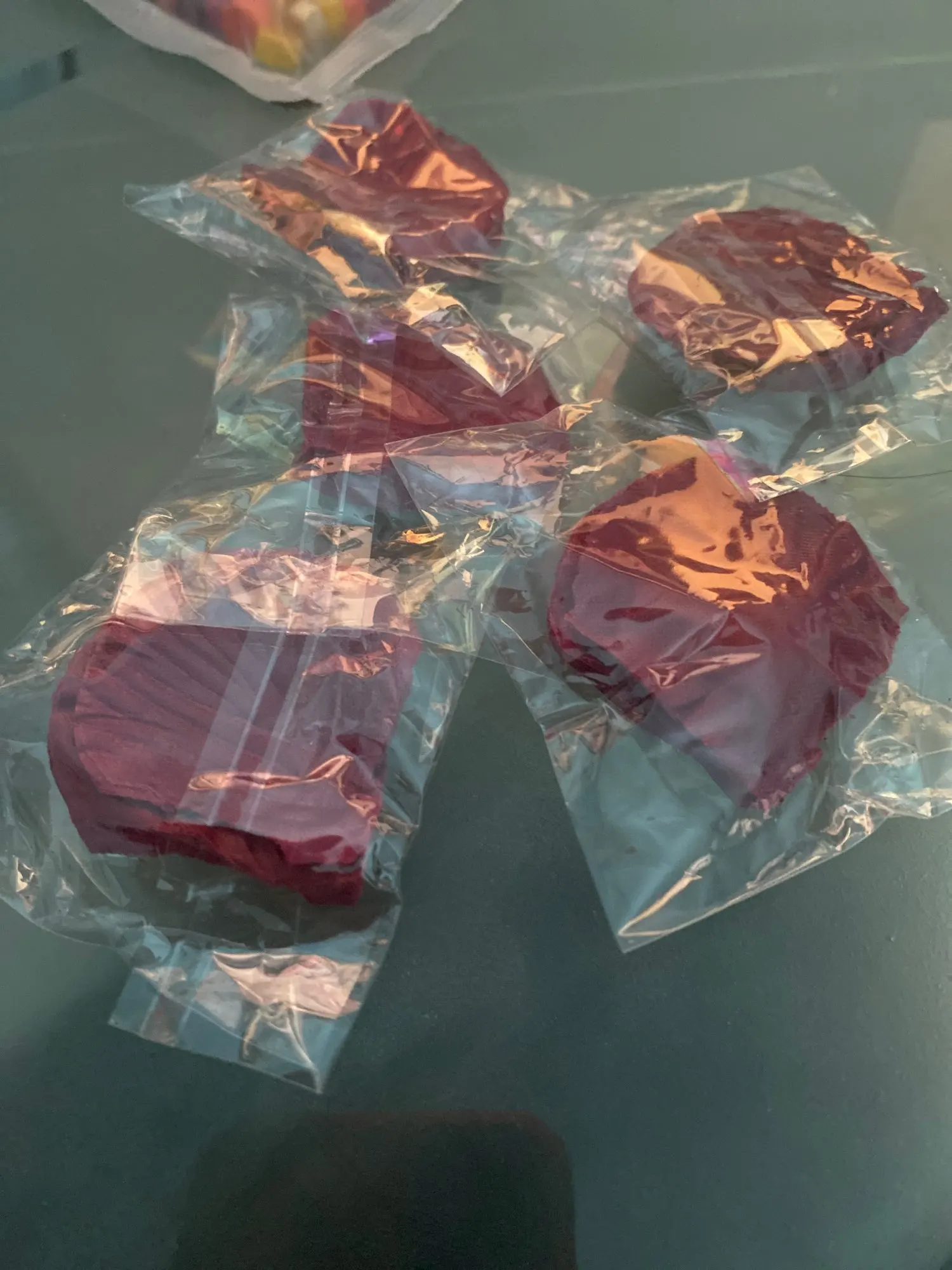 Лепесточьки красивые ! Ехали в Литву долгова-то . Рекомендую этот магазин!Покупала раньше в другом магазине , так вместо лепестков муссор какой-то прислали.