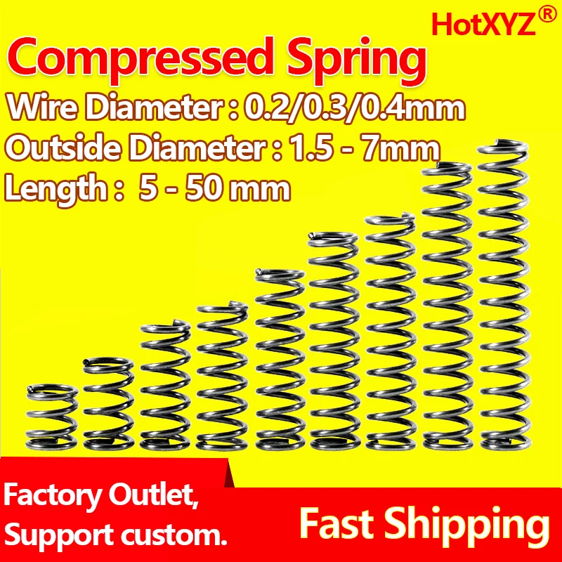 Цилидрическая катушка HotXYZ 65Mn, компрессионная, маленькая пружина типа Y, обратное давление, сжатая стальная проволока, диаметр 0,2, 0,3, 0,4 мм