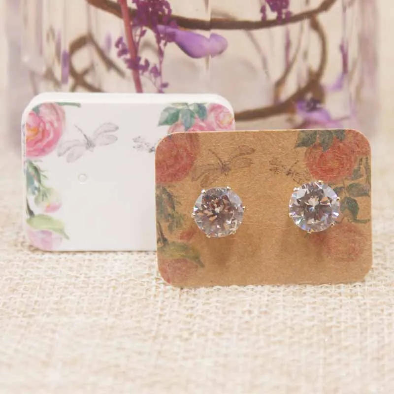 100 шт милые серьги в цветочном стиле бумажная упаковка карты DIY маленькие серьги-гвоздики карта белая крафт-бумага Ювелирные изделия дисплей картыПакета ювелирных изделий карты материал