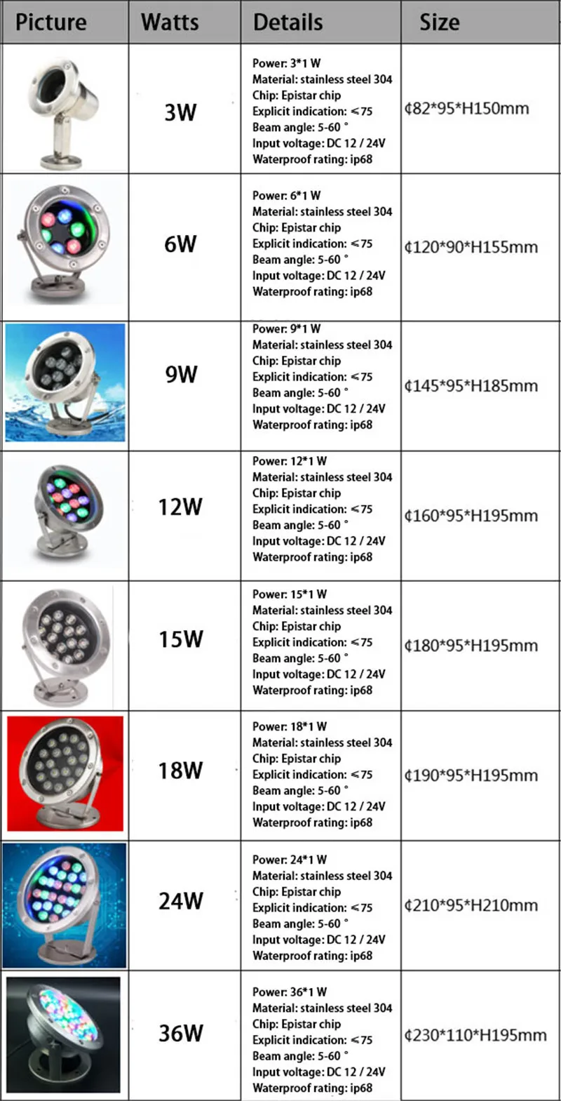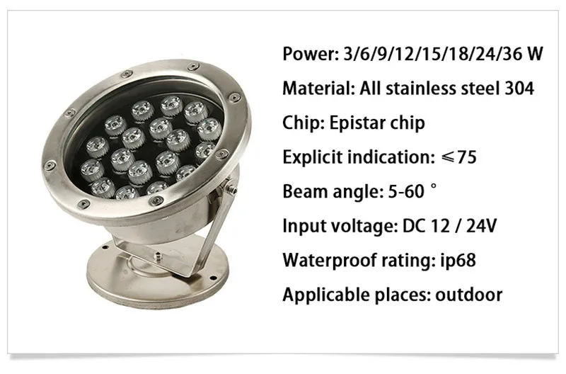 Подводный светодиодный RGB светильник, ночник для улицы, сада, бассейна, вечеринки, ландшафта, IP68, 3 Вт, 6 Вт, 9 Вт, 12 Вт, 18 Вт, 24 Вт, 36 Вт, 12 В, 24 В постоянного тока