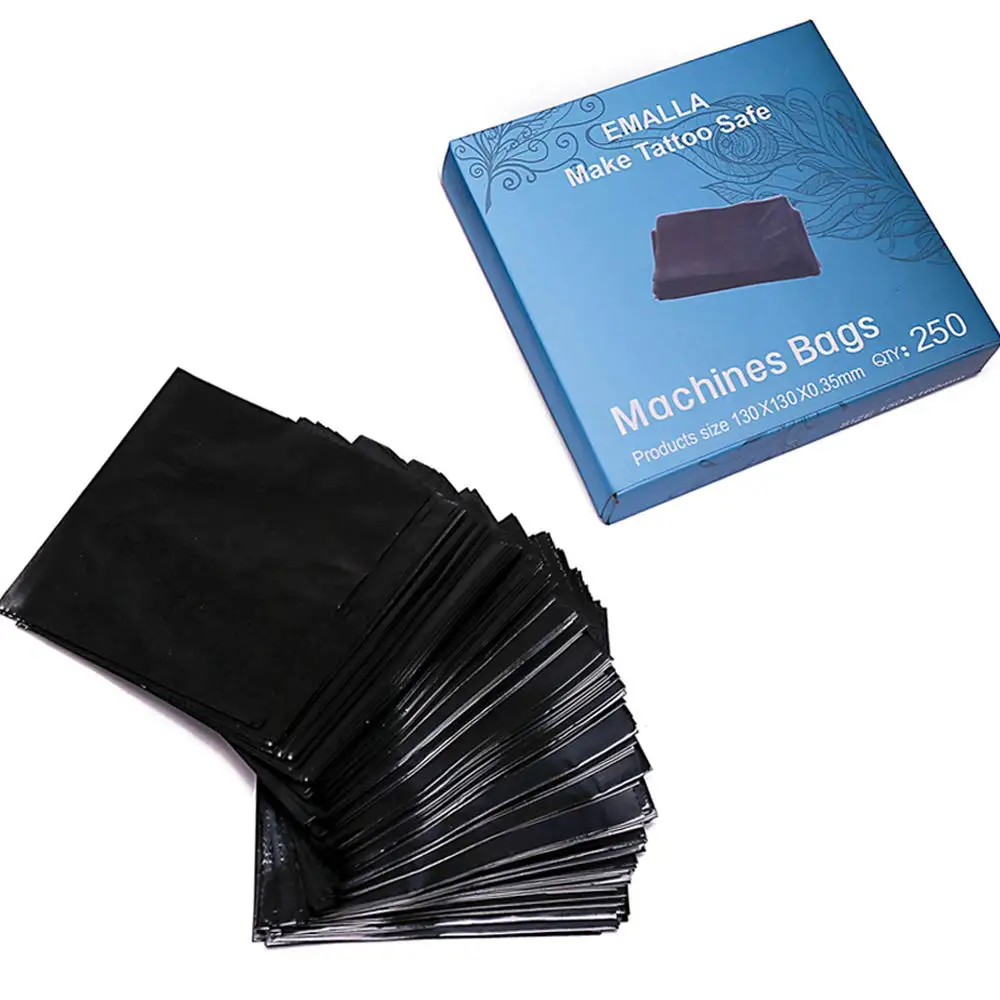 EMALLA черный 250 шт. черная тату машина Чехлы рукава Сумки 0,35 мм толщина татуировки чистые барьер сумки для таттtoo аксессуары