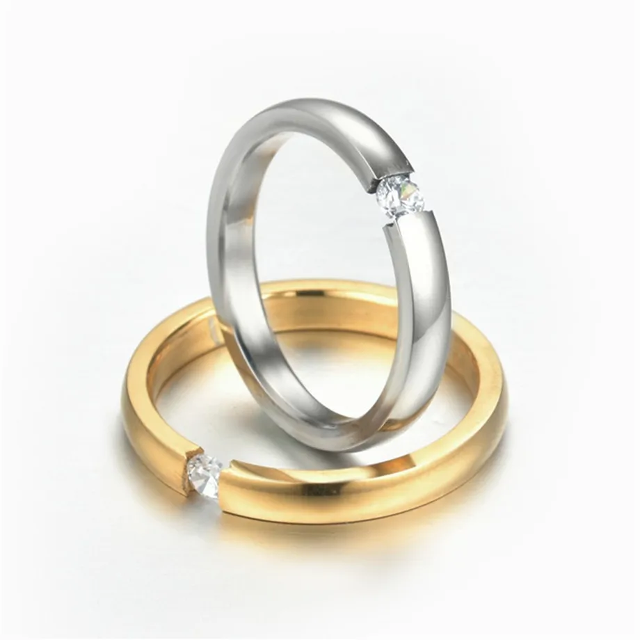 Женское Обручальное кольцо из нержавеющей стали с фианитом, 4 мм