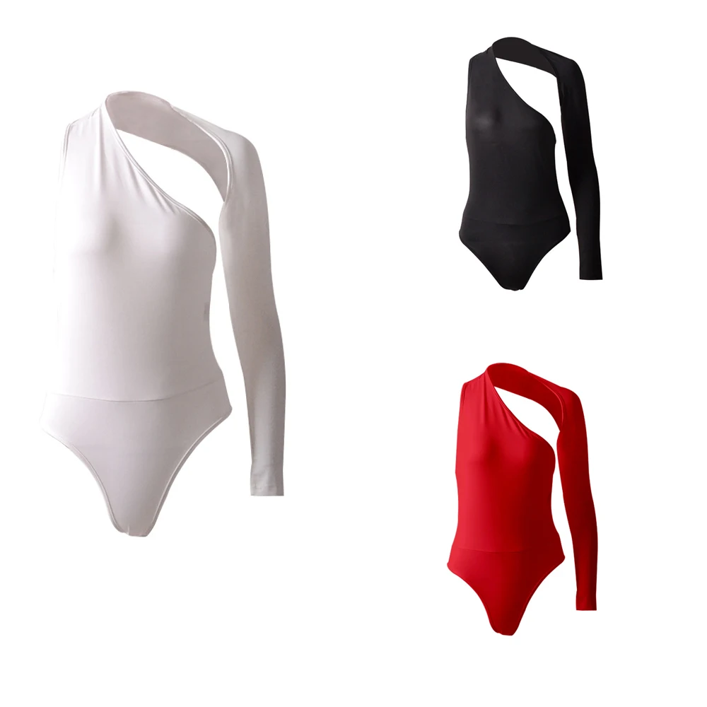 Женское боди, цветное сексуальное облегающее трико на одно плечо, топ с одним рукавом