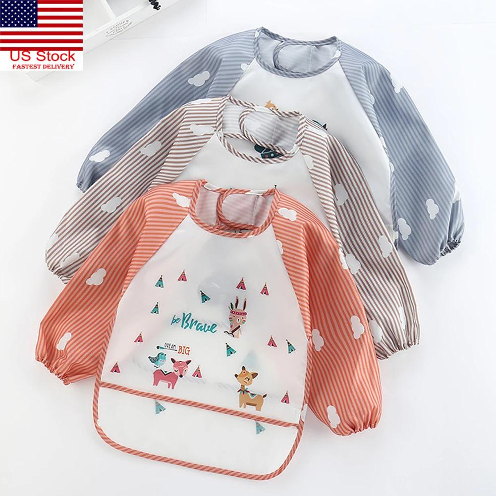 Водонепроницаемый Фартук для кормления малышей, с длинным рукавом