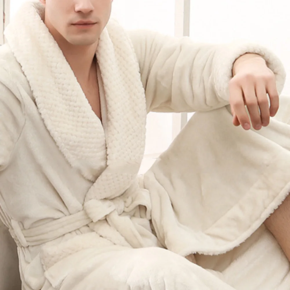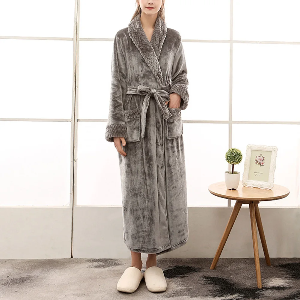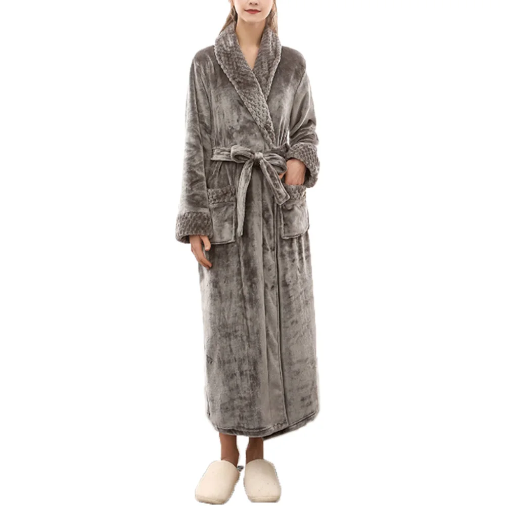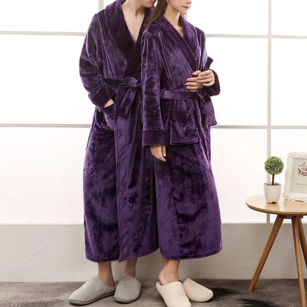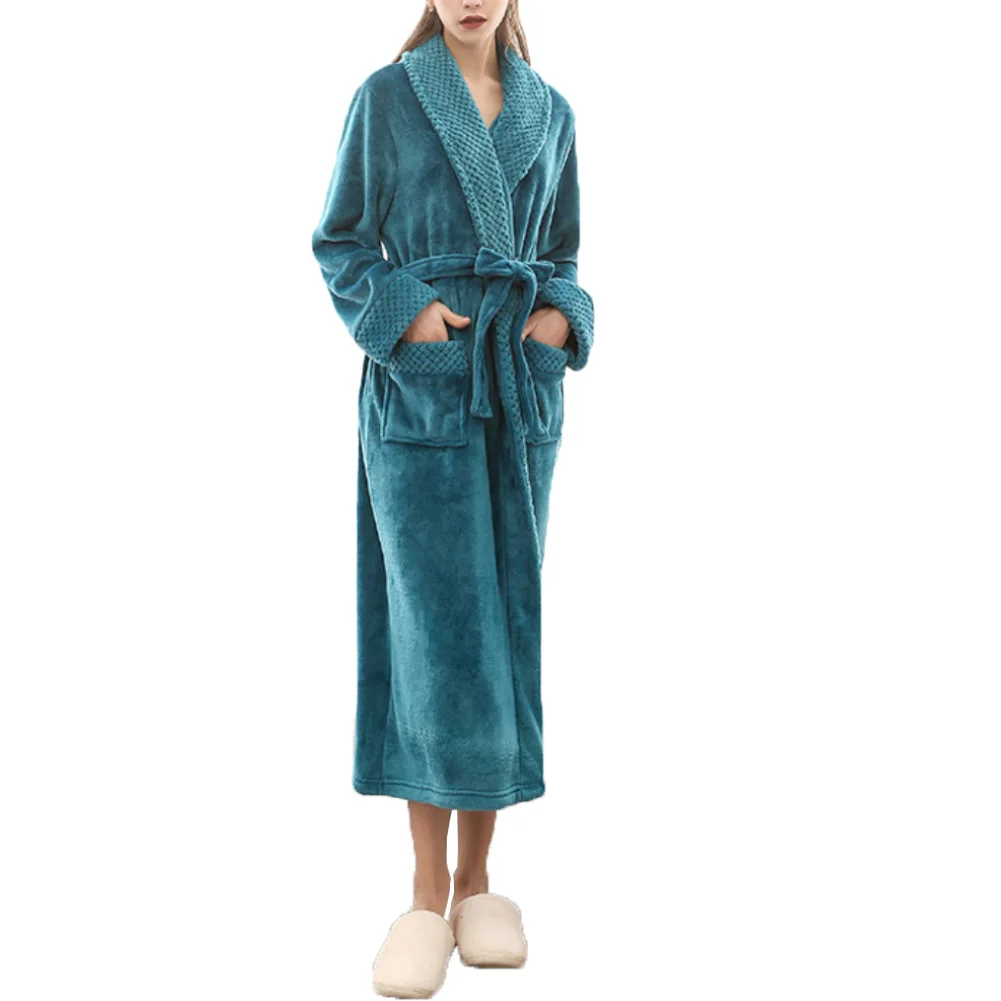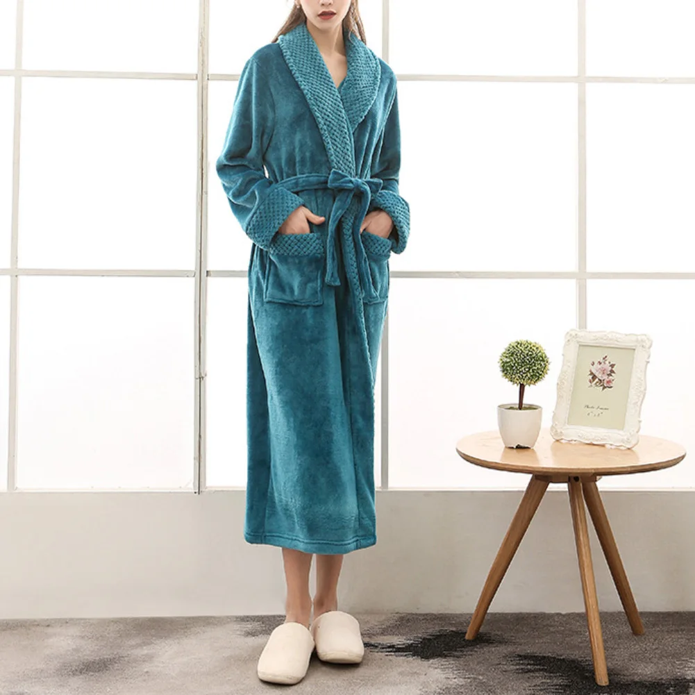 Женский и мужской зимний мягкий однотонный плотный теплый длинный банный халат, домашняя одежда для сна