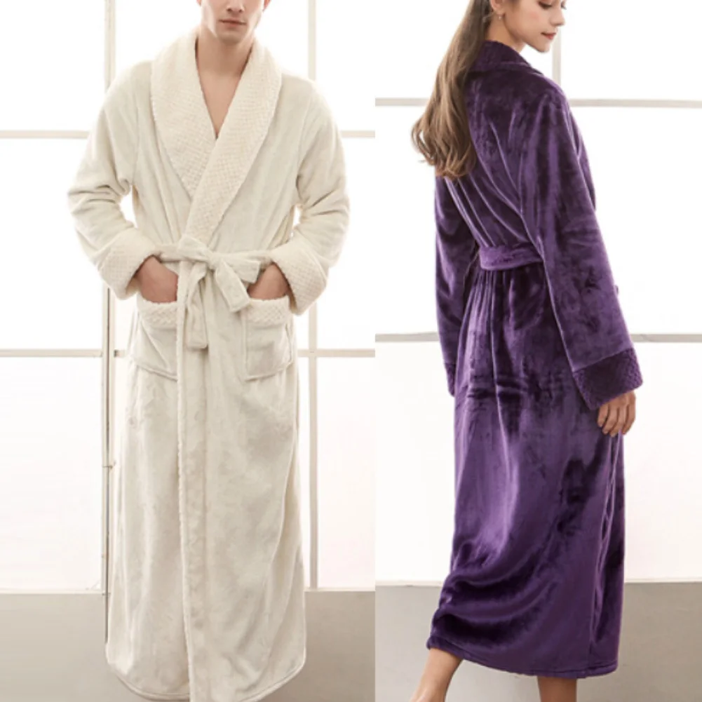 Халат фланелевый длинный теплый для мужчин и женщин, роскошный пикантный банный халат, одежда для подружки невесты, кимоно, зима