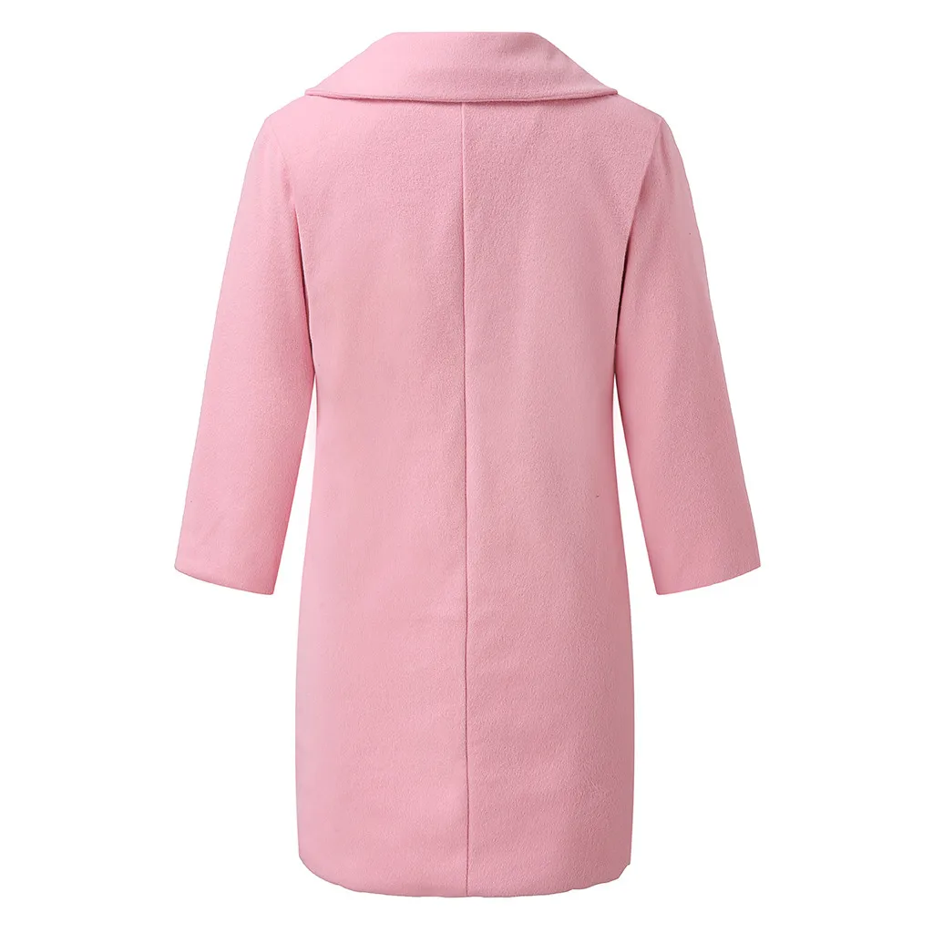 Женское модное однотонное повседневное шерстяное пальто средней длины с длинным рукавом