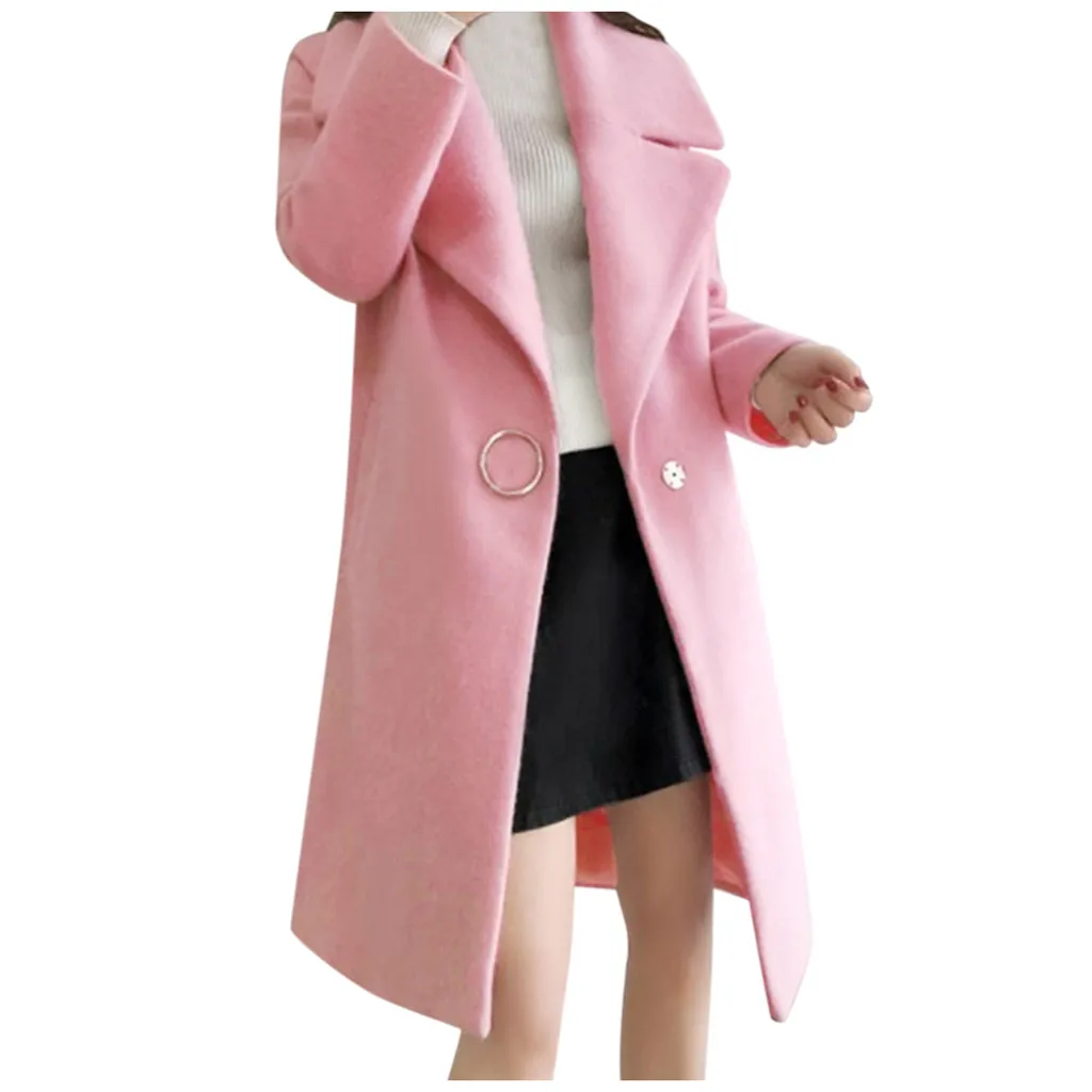 Женское шерстяное пальто, белое повседневное пальто на одной пуговице, с длинным рукавом, средней длины, с отложным воротником, зимнее пальто