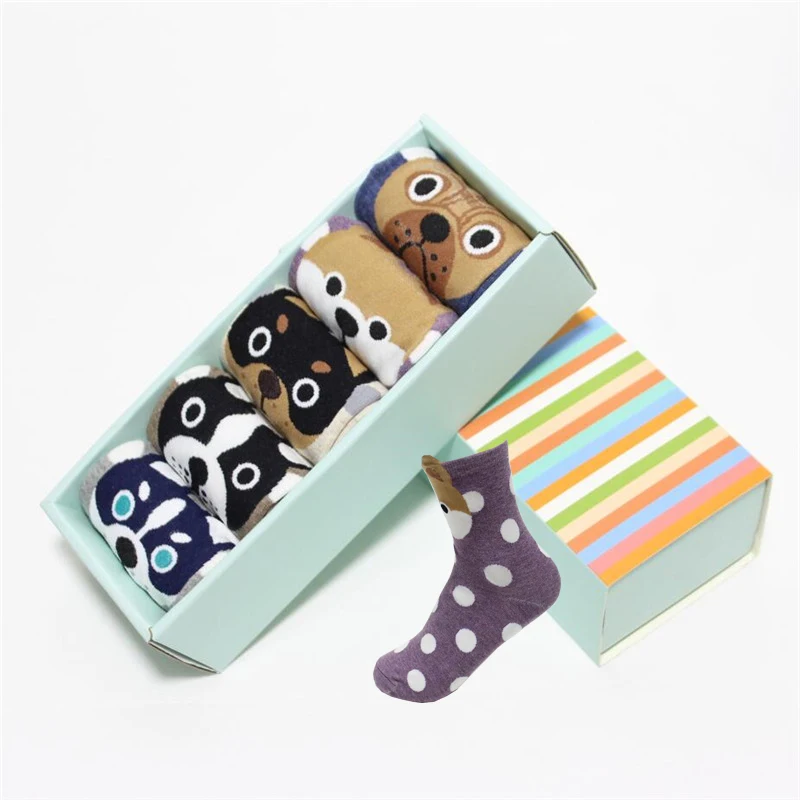 Носки женские хлопковые, с рисунком, 5 пар, в подарочной коробке