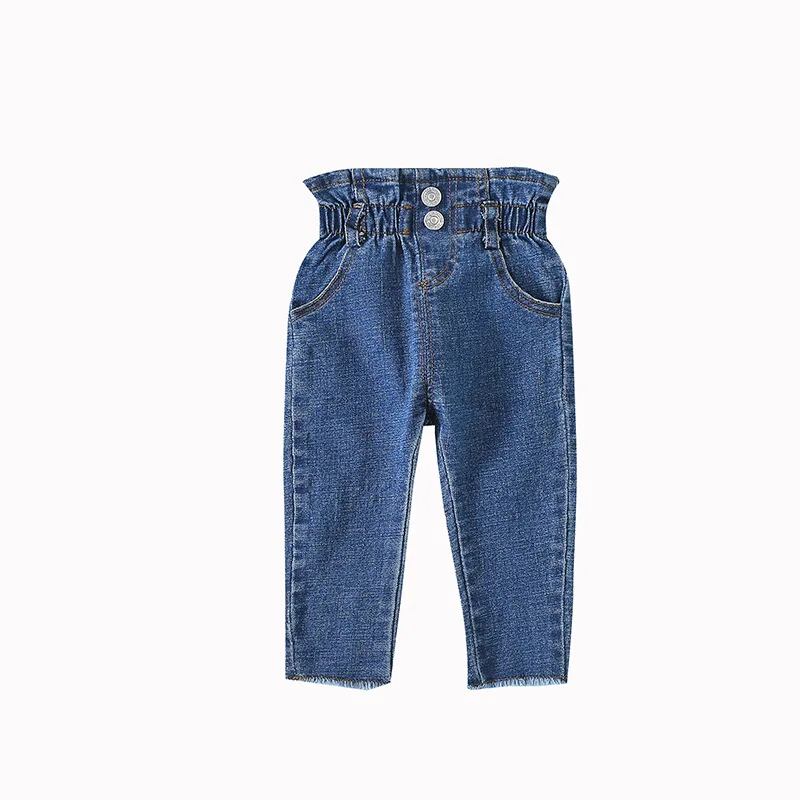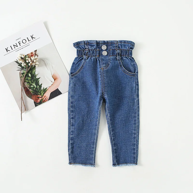 Новые джинсы с высокой талией для девочек, джинсовые штаны для малышей, Детские однотонные джинсовые брюки, одежда для маленьких девочек