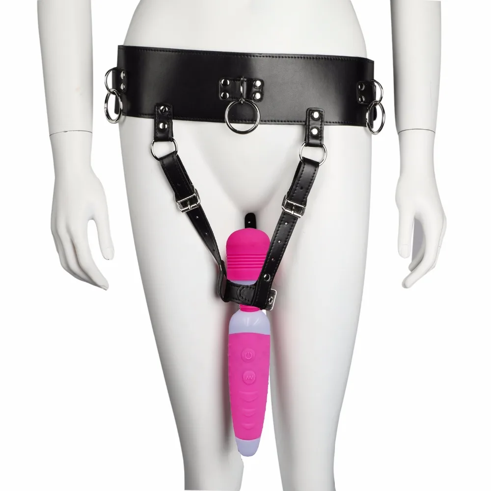 Секс БДСМ бандаж наручники для ремня через одно плечо Для женщин Пояс верности 12 Скоростей зарядки AV палочка вибратор Секс-игрушки для девушек и женщин